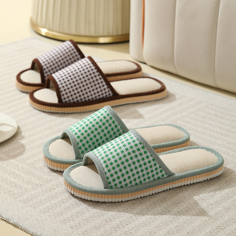 Новые льняные тапочки в клетку для дома, женские и мужские, нескользящие, с мягкой подошвой, оптом
