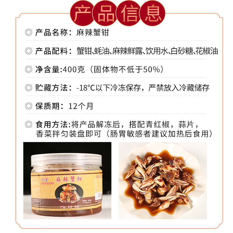 Пряные крабовые щипцы 400 г рыбного сока из морепродуктов