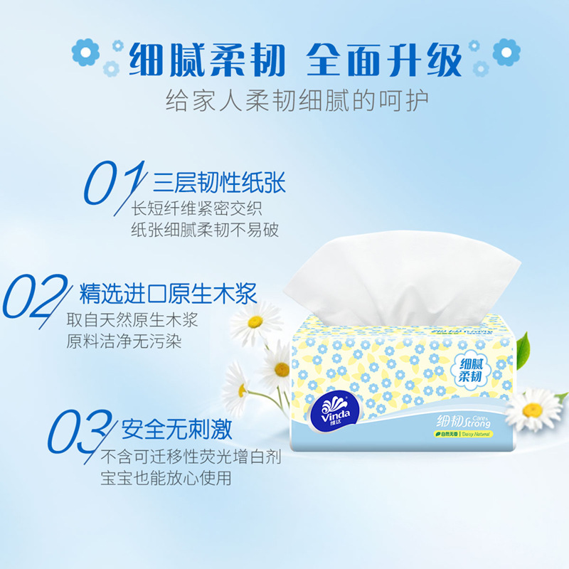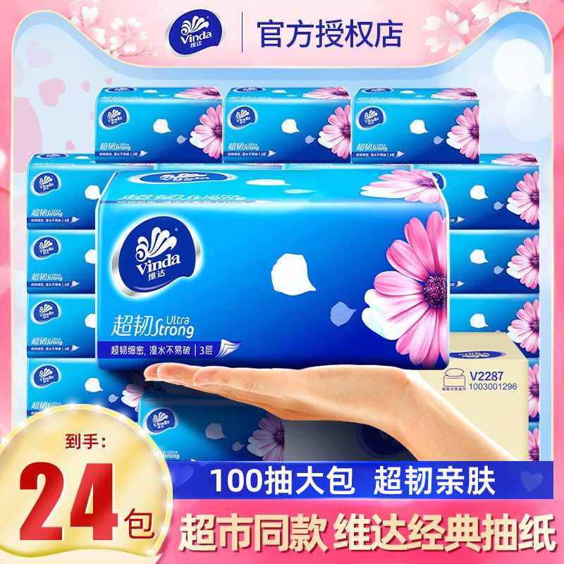 Тканевые салфетки Vinda, 3 слоя, 100 листов, автомобильные мягкие салфетки для лица, полная коробка, 24 упаковки, семейная упаковка, туалетная бумага без запаха, заводская партия
