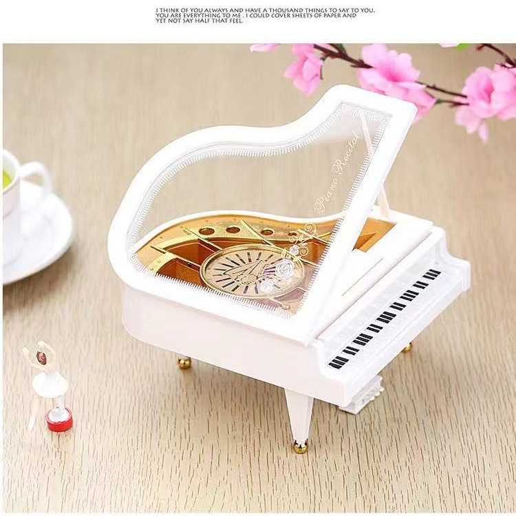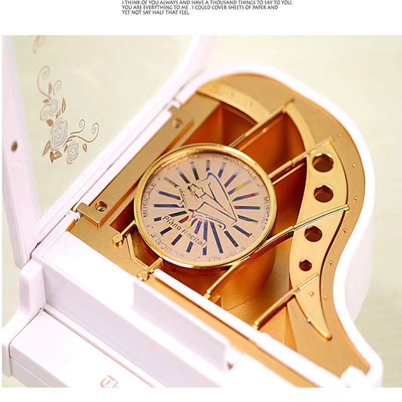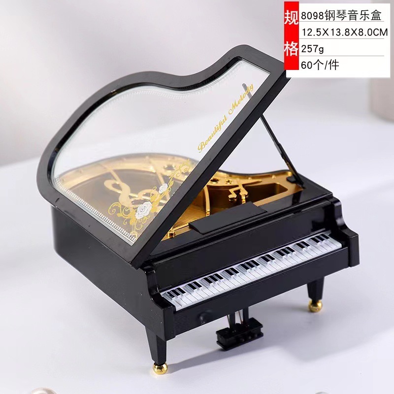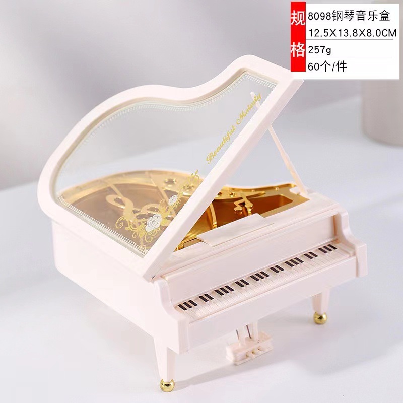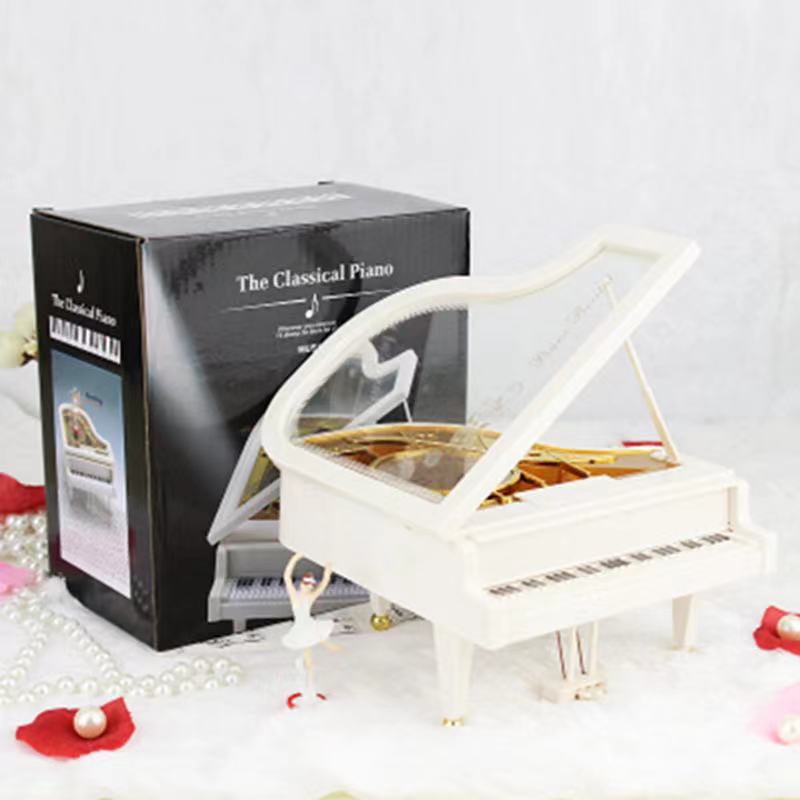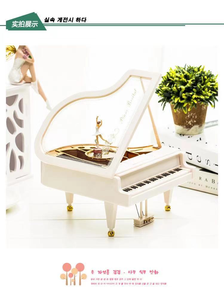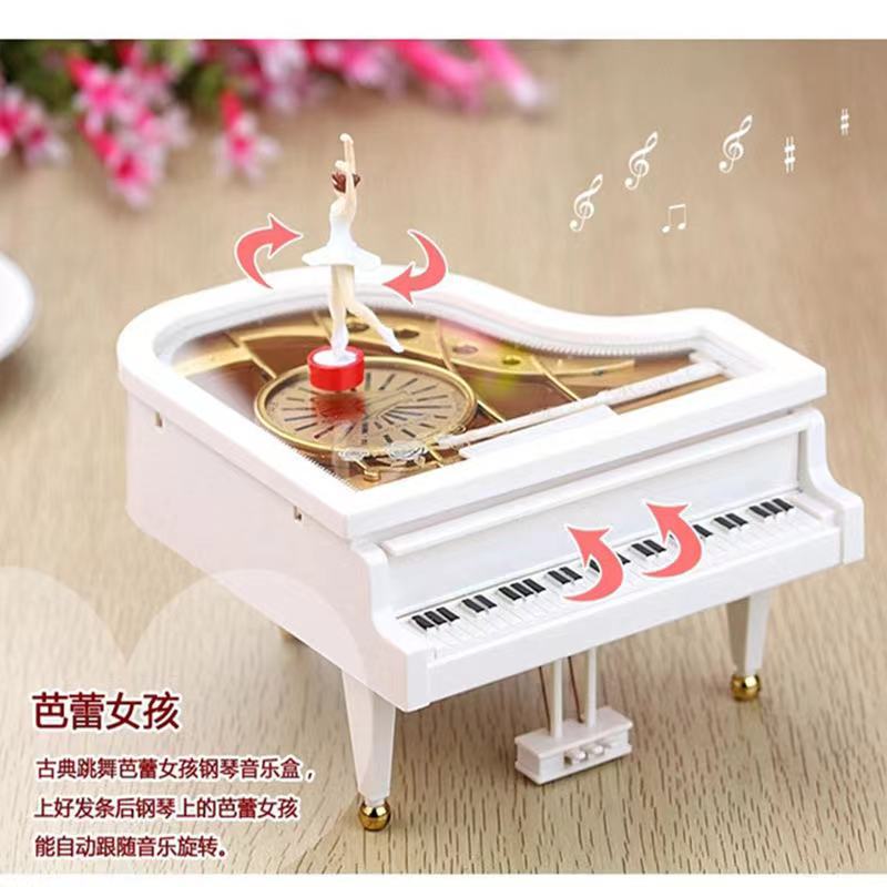 【产品尺寸】塑料大号16.2*10.5*17cm带女孩小配件 女孩可以旋转 。小号12.5*11.5*7.5cm不带女孩配件 不能旋转 本钢琴设计 造型优美 带有悠悠的纯音乐 还有一个美丽的女孩在琴台上悠悠飞舞 翻开琴盖 女孩会随着音乐旋转跳舞 关上琴盖音乐盒女孩都会停止。是如今为流行的一款音乐钢琴 音乐有天空之城和爱丽丝随机发货