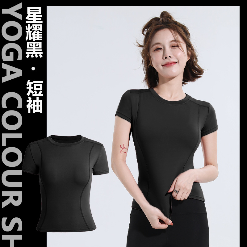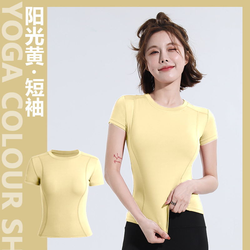 Узкая одежда для йоги, женская спортивная одежда для фитнеса, плотная быстросохнущая одежда для бега, впитывающая пот, облегающая футболка с коротким рукавом для йоги