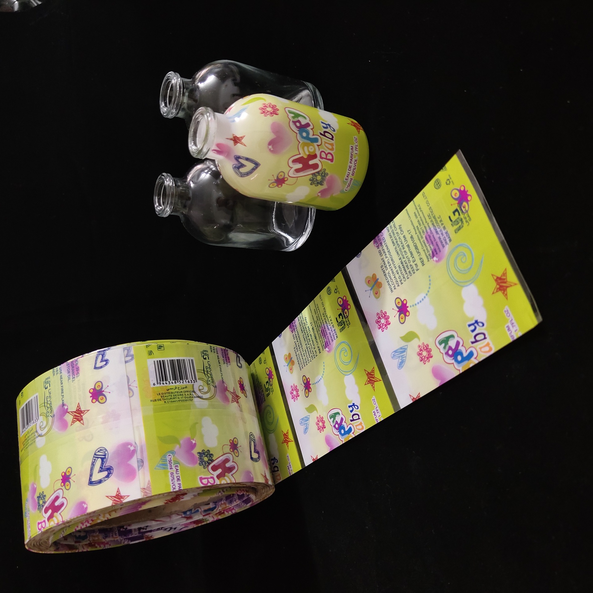 Производитель прямой поставки внешней торговли флакон душинок ПВХ цветная печать упаковка термоусадочная этикетка ПЭТ печатная пленка стеклянная бутылка этикетка пленка
