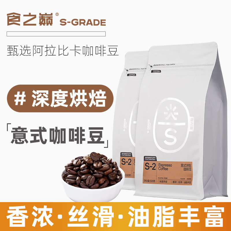 Кофе в зернах Top of Food 500 г итальянской специи со вкусом синей горы Маленькие кофейные зерна Юньнань, свежеобжаренные и измельченные