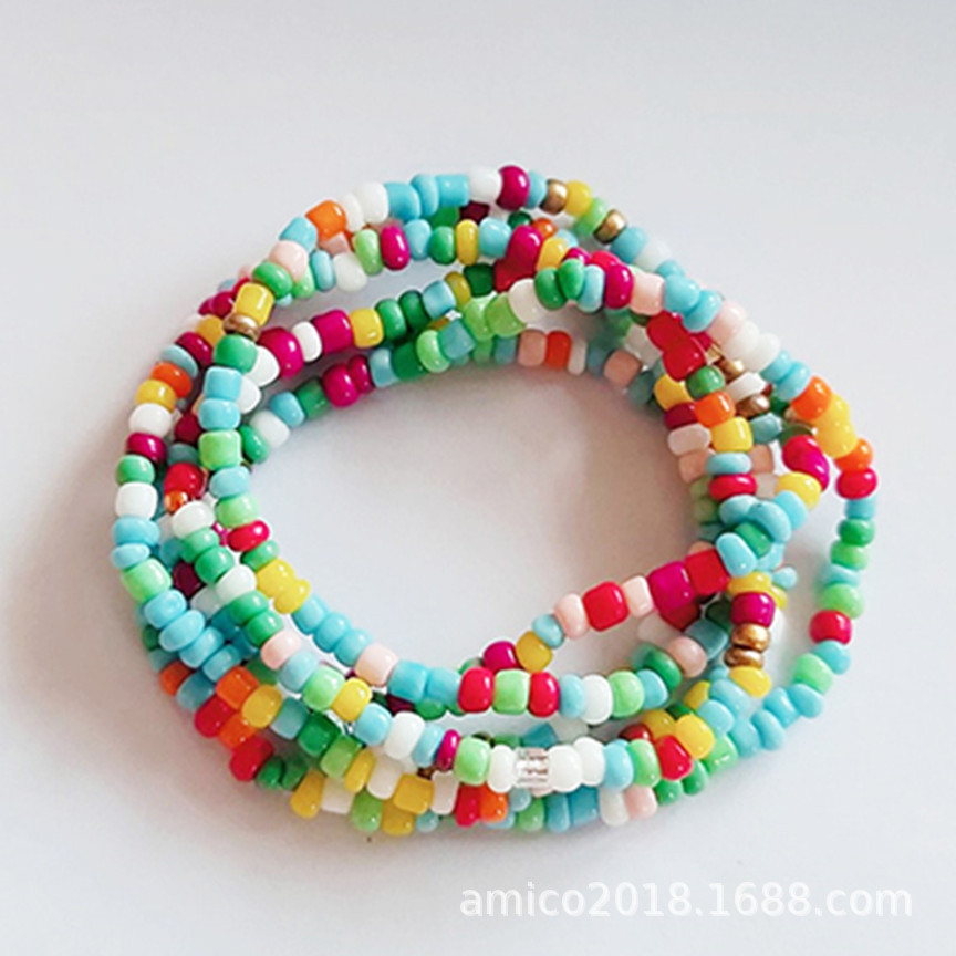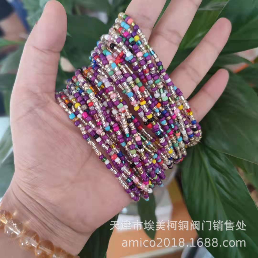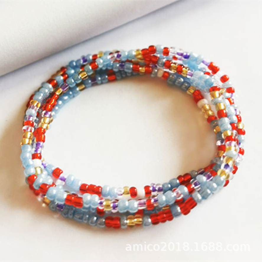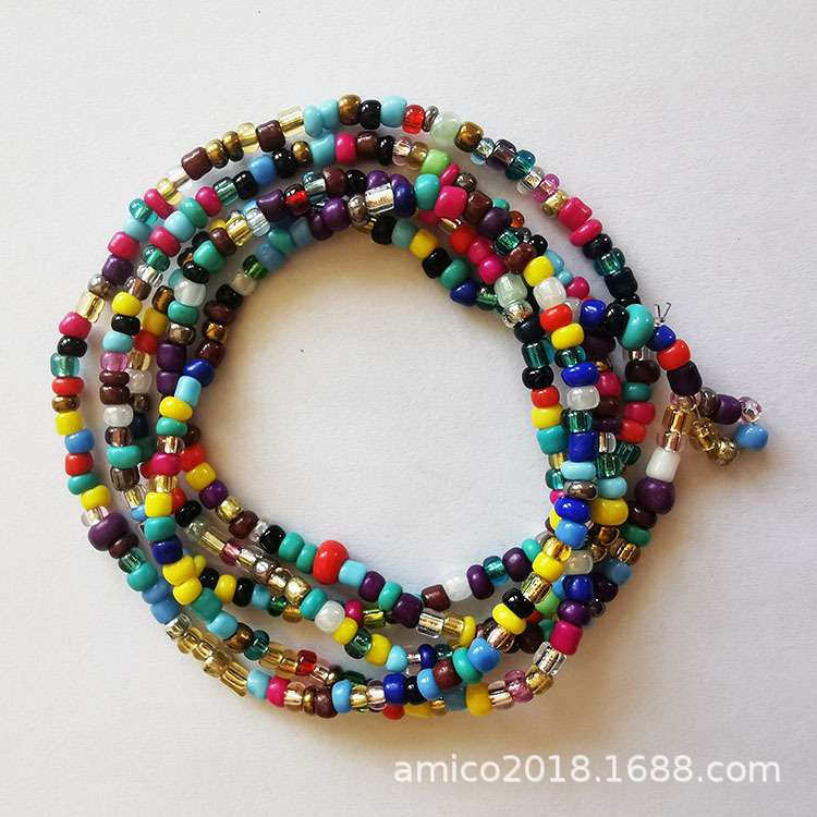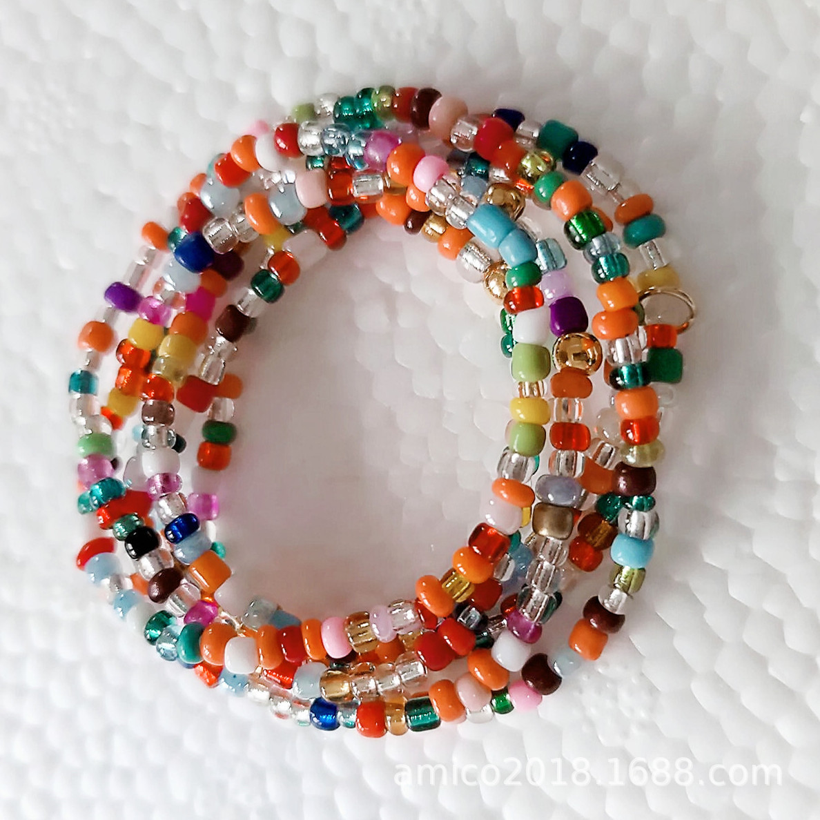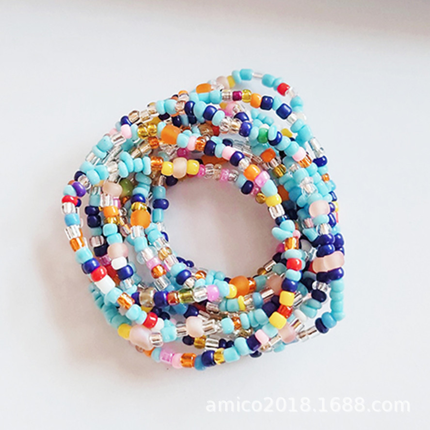 Трансграничная европейская и американская пляжная цепочка из рисовых бусин, эластичные богемные разноцветные бусы для талии.