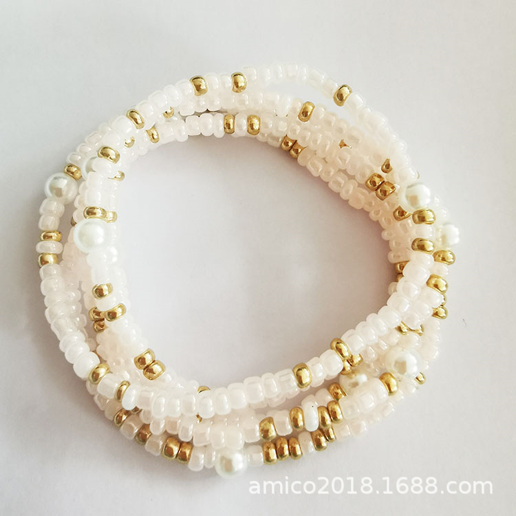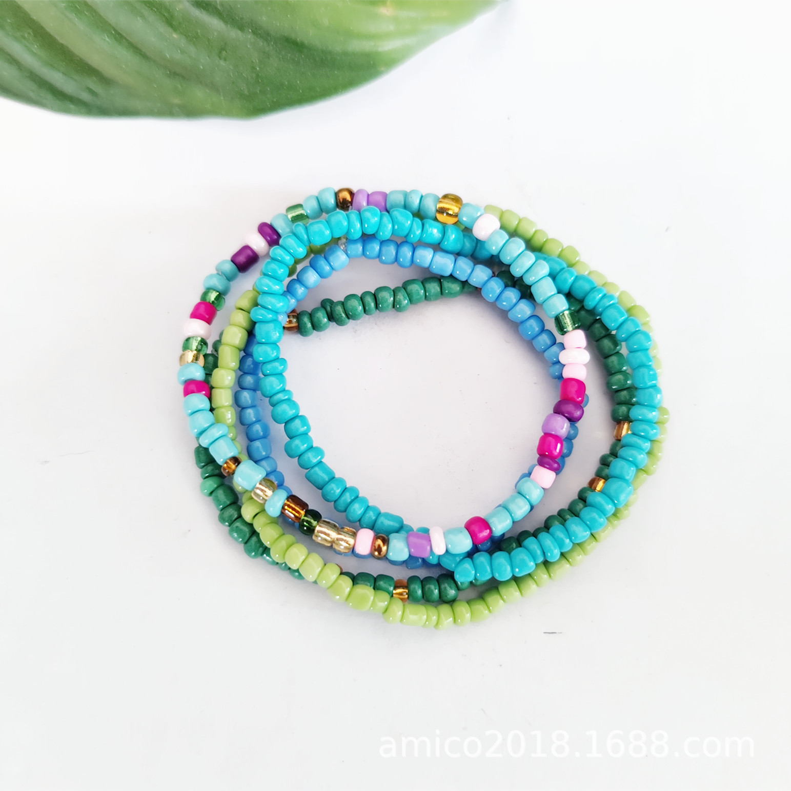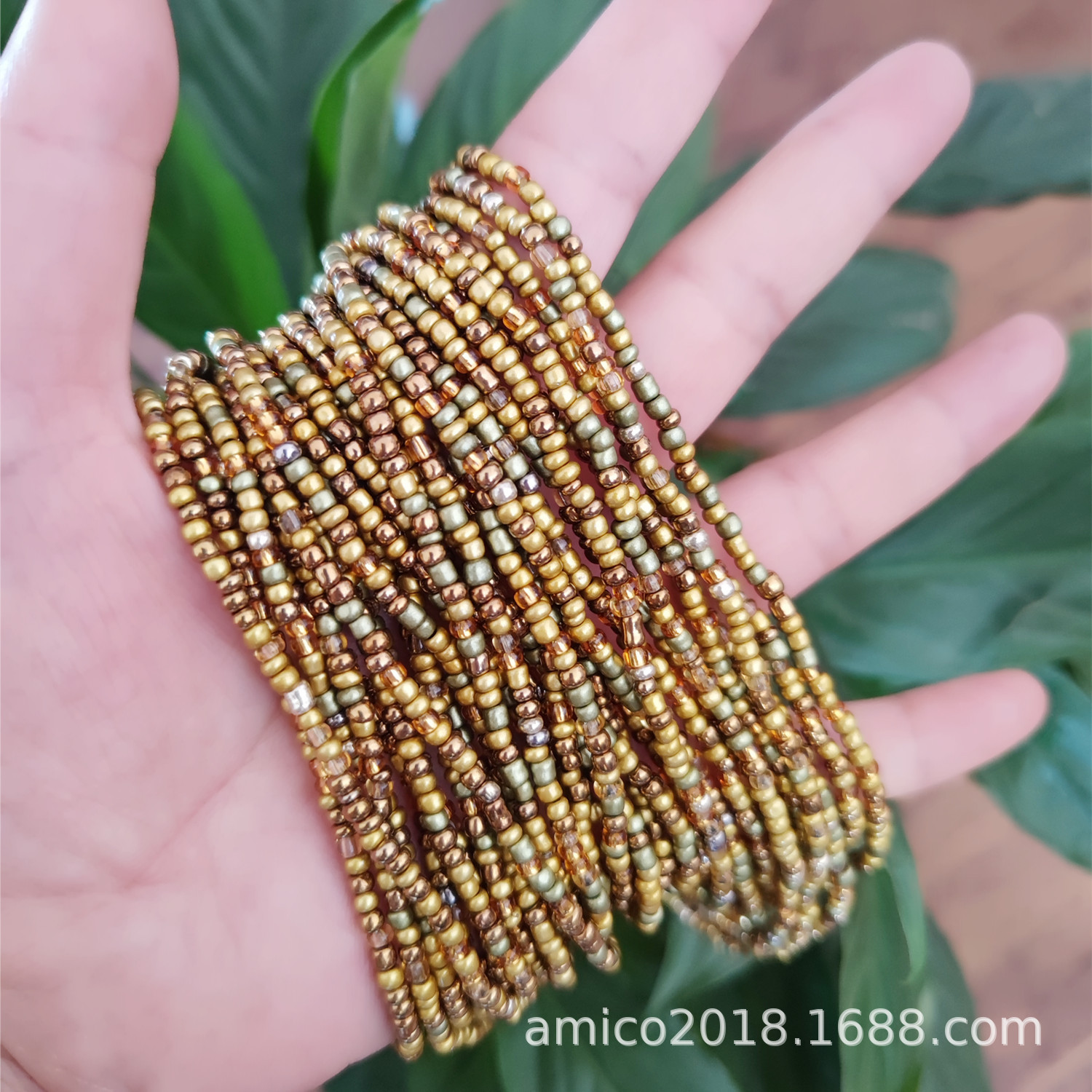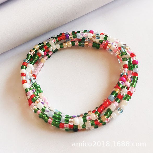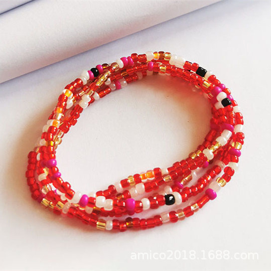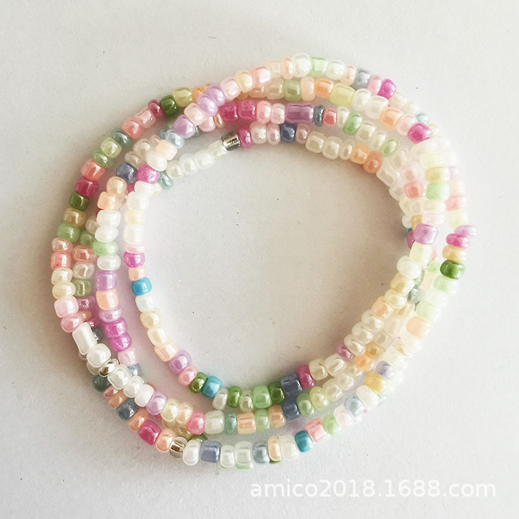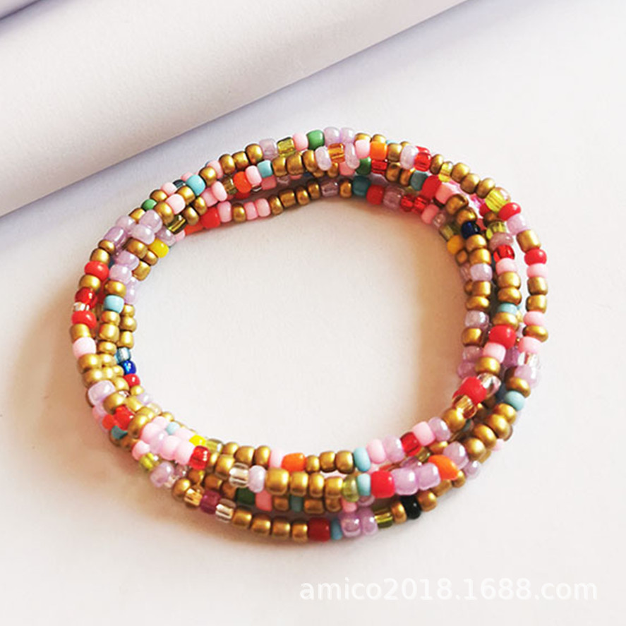 Трансграничная европейская и американская пляжная цепочка из рисовых бусин, эластичные богемные разноцветные бусы для талии.