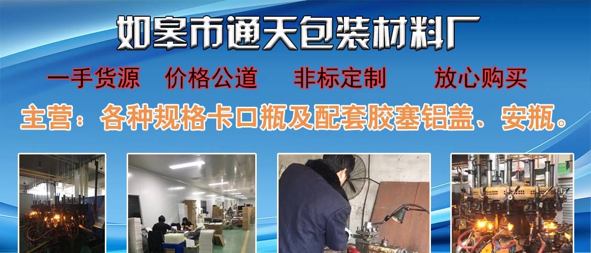 如皋市通天材料包装厂常年提供各种现货瓶子及其相关配件,另外还可进行各种工艺加工,如果有非普通规格的瓶子,欢迎来电洽谈,我们可开模具定做!