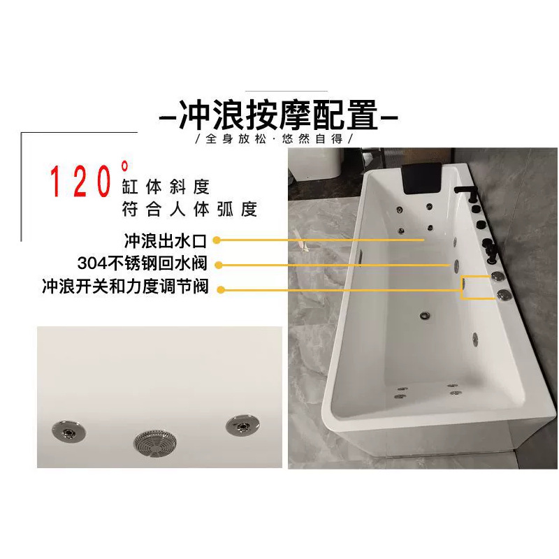 Aoningjie квадратная джакузи для серфинга Акрил ванна малая квартира бытовая отдельно стоящая термостата контроля