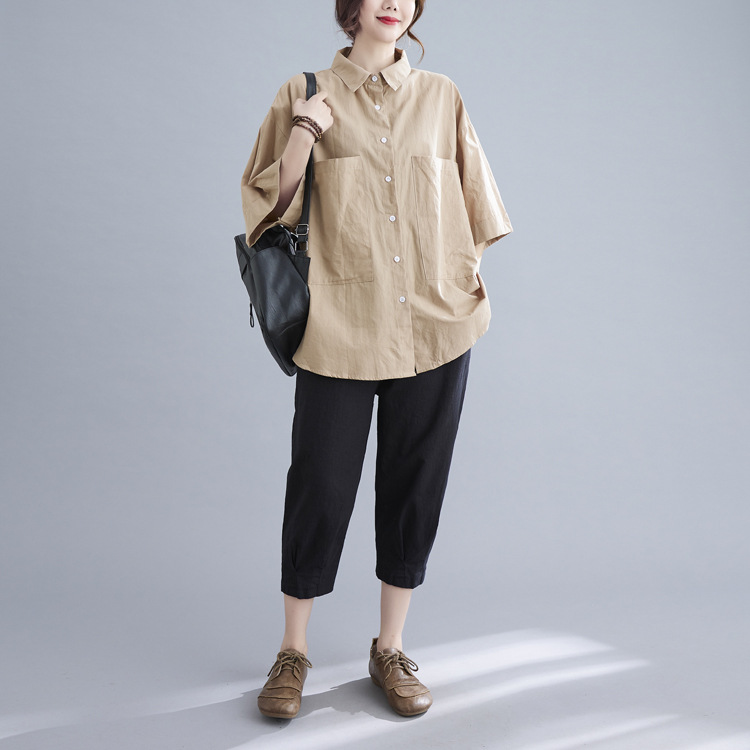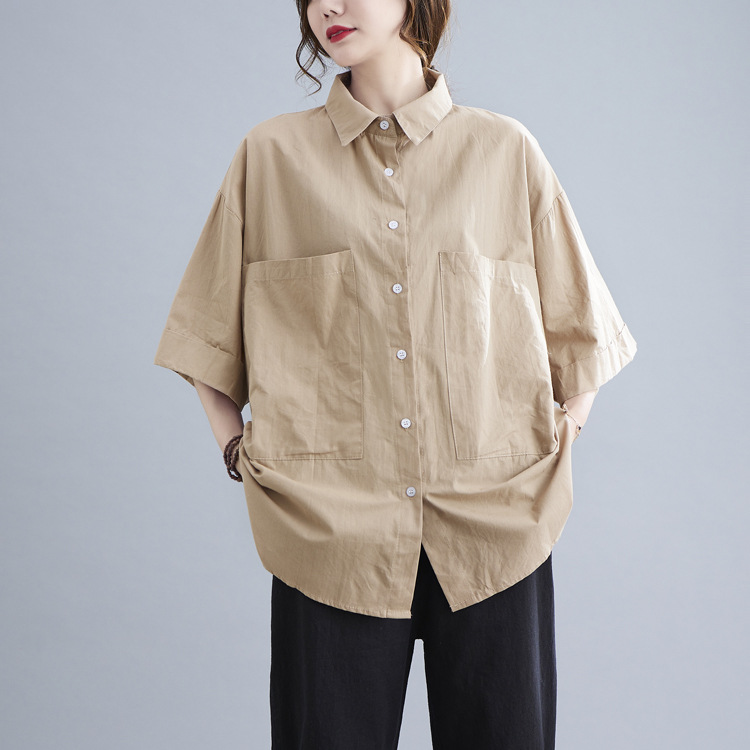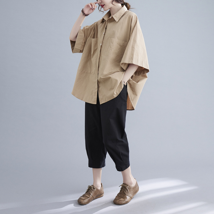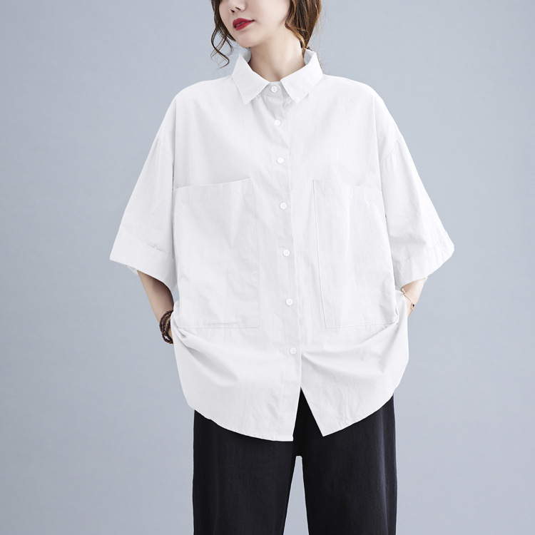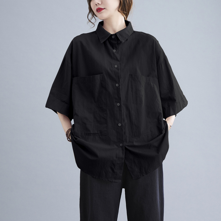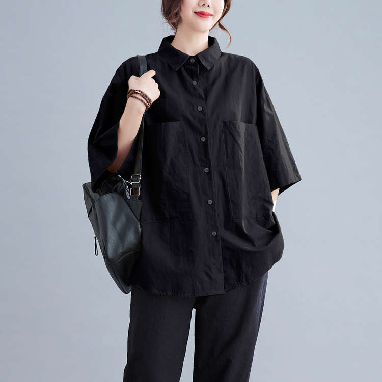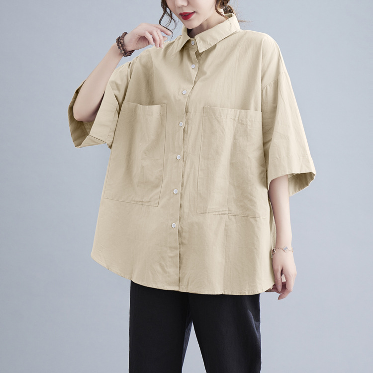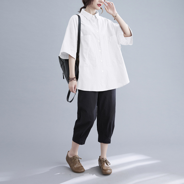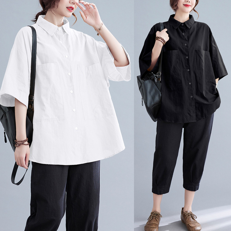 Настоящий выстрел 2021 летнее новое пальто больших размеров, простой женский топ, свободная Тонкая Повседневная хлопковая рубашка с пухленькими девушками
