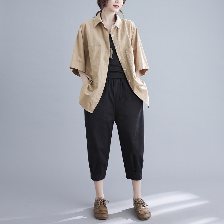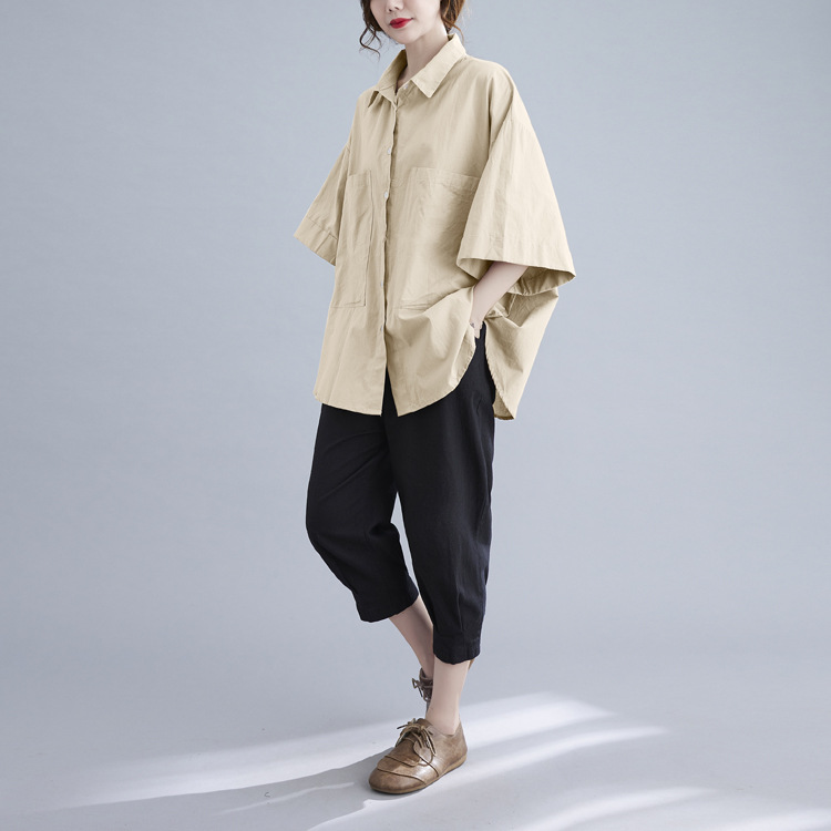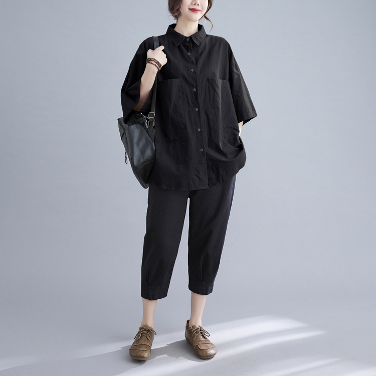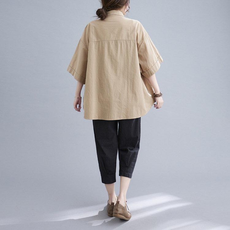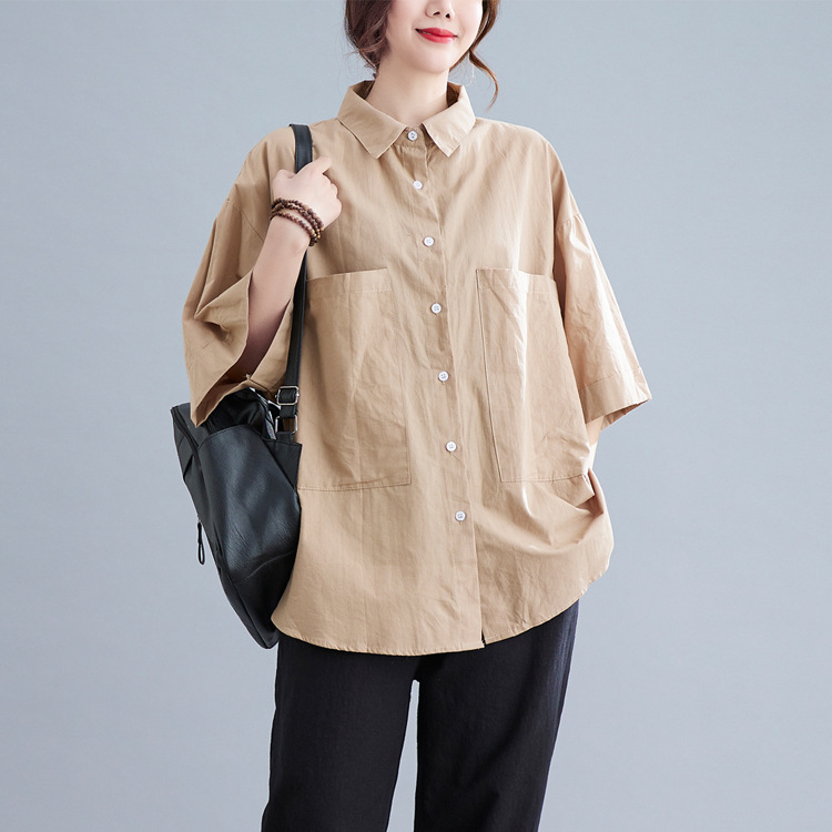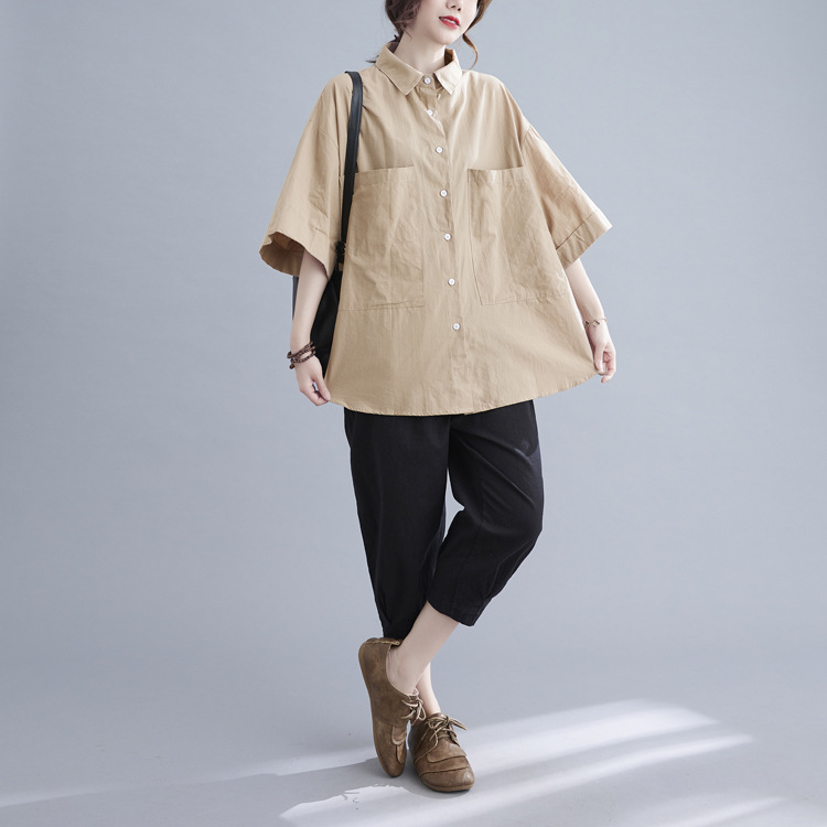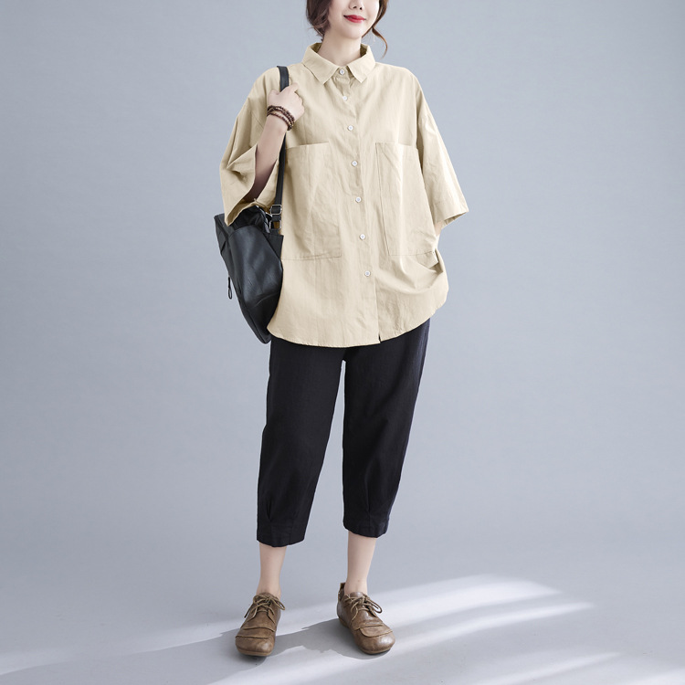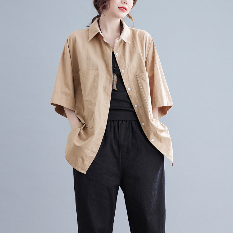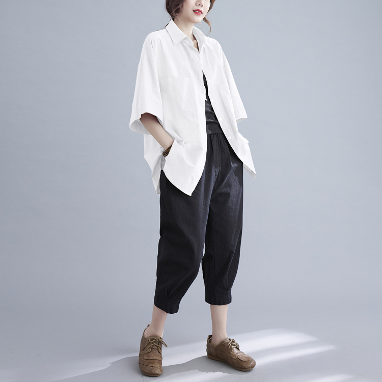 Настоящий выстрел 2021 летнее новое пальто больших размеров, простой женский топ, свободная Тонкая Повседневная хлопковая рубашка с пухленькими девушками