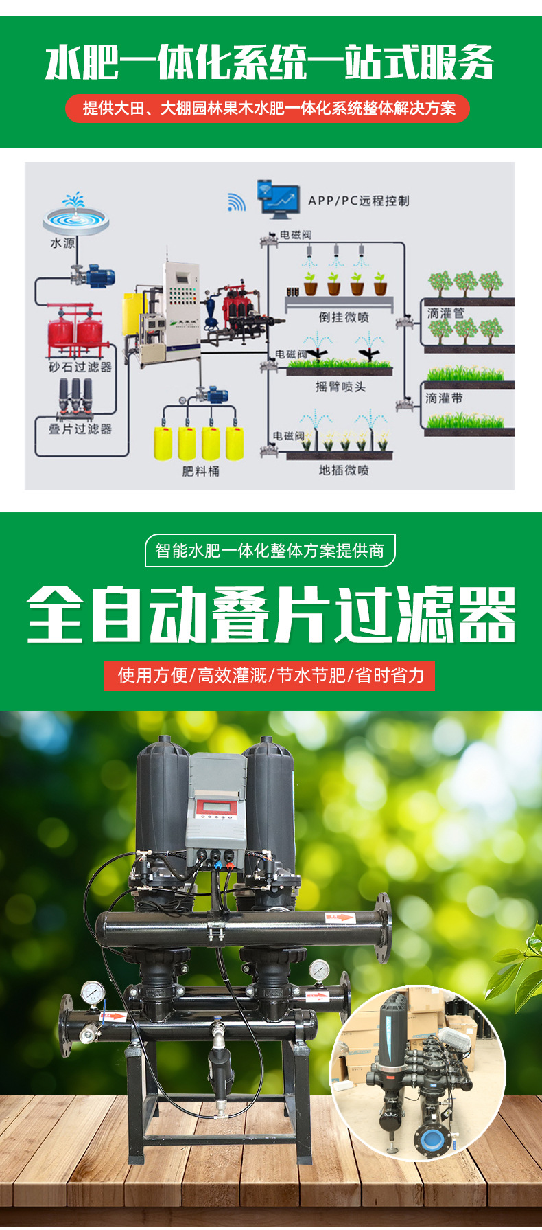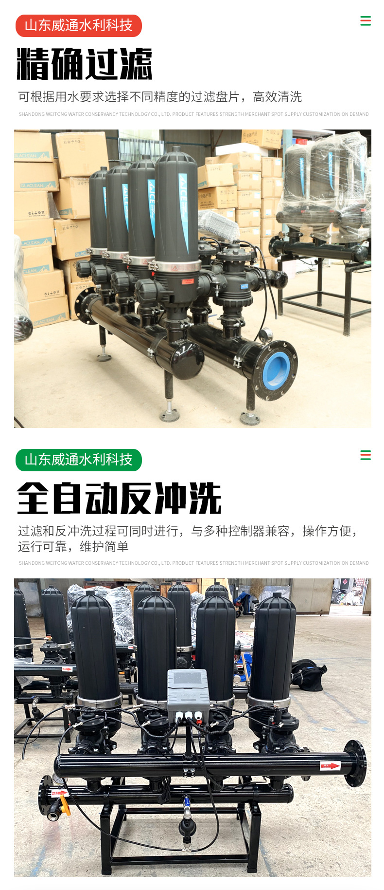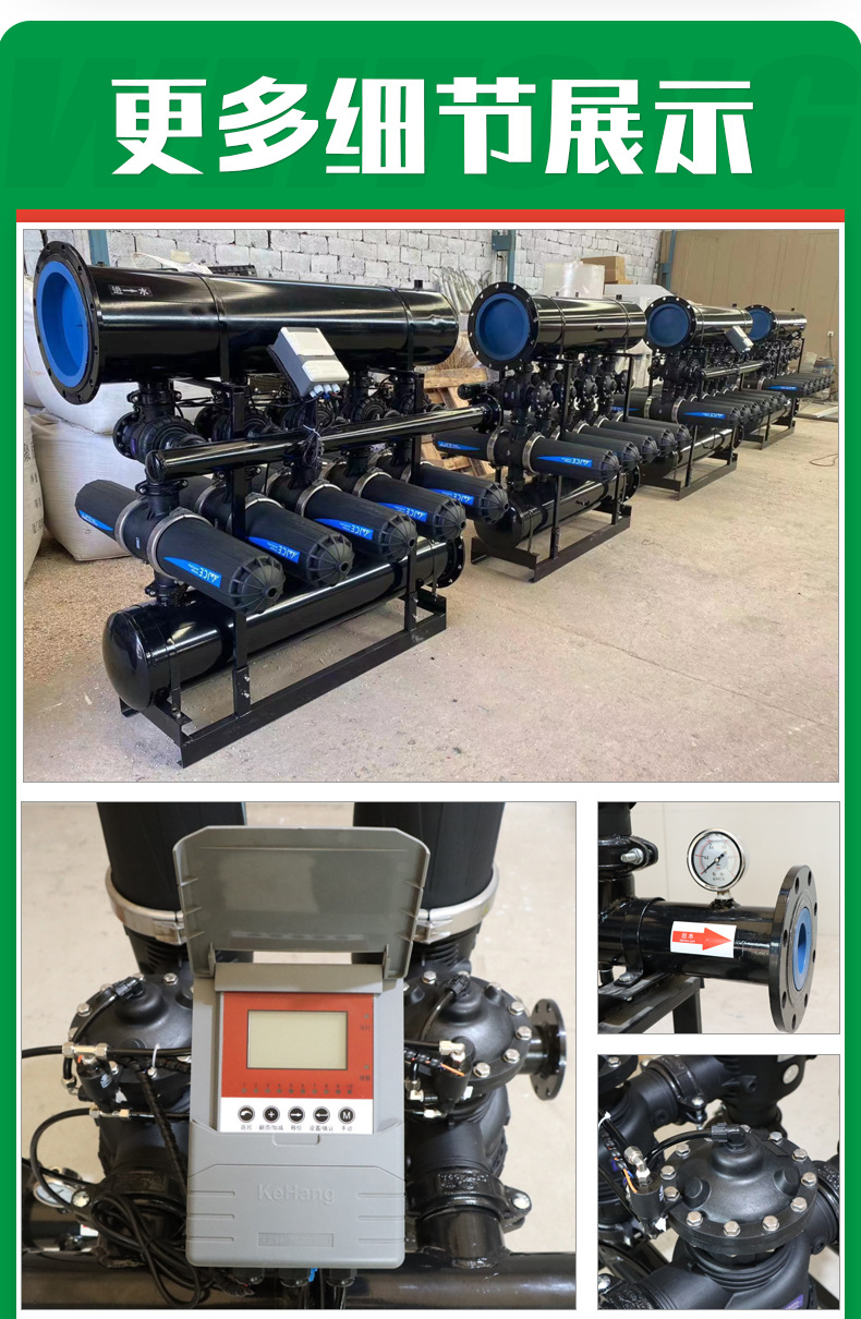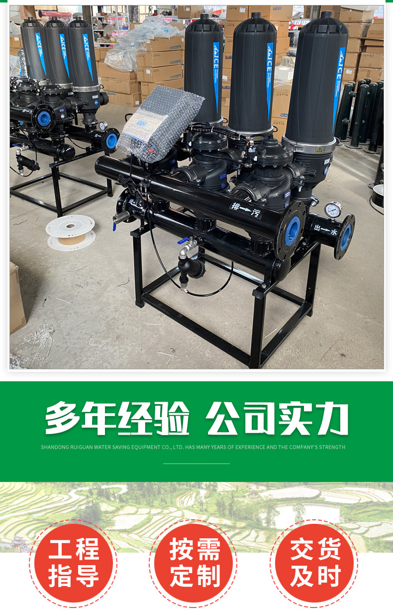 Полностью автоматический ламинированный фильтр для очистки воды в сельскохозяйственных системах орошения с функцией автоматической обратной промывки.