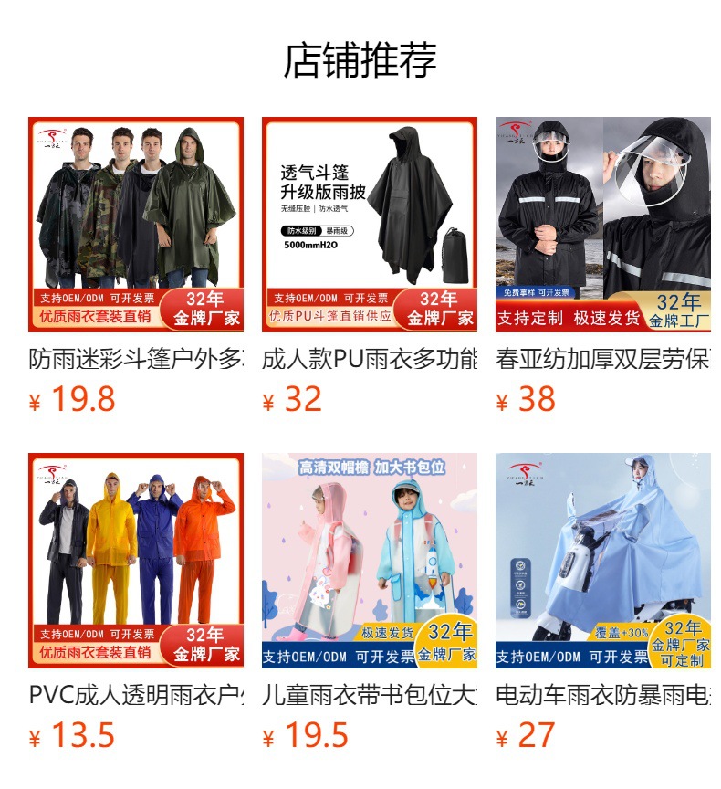 32 года опыта от производителя Chenyuan Rain Gear, специализирующегося на изготовлении дождевиков, пончо и накидок с уникальными технологиями. Изготовление образцов, самостоятельное производство и заказы с предоплатой доступны только для трансграничной торговли.