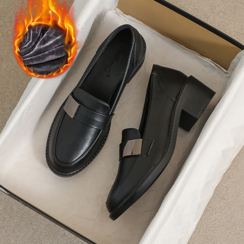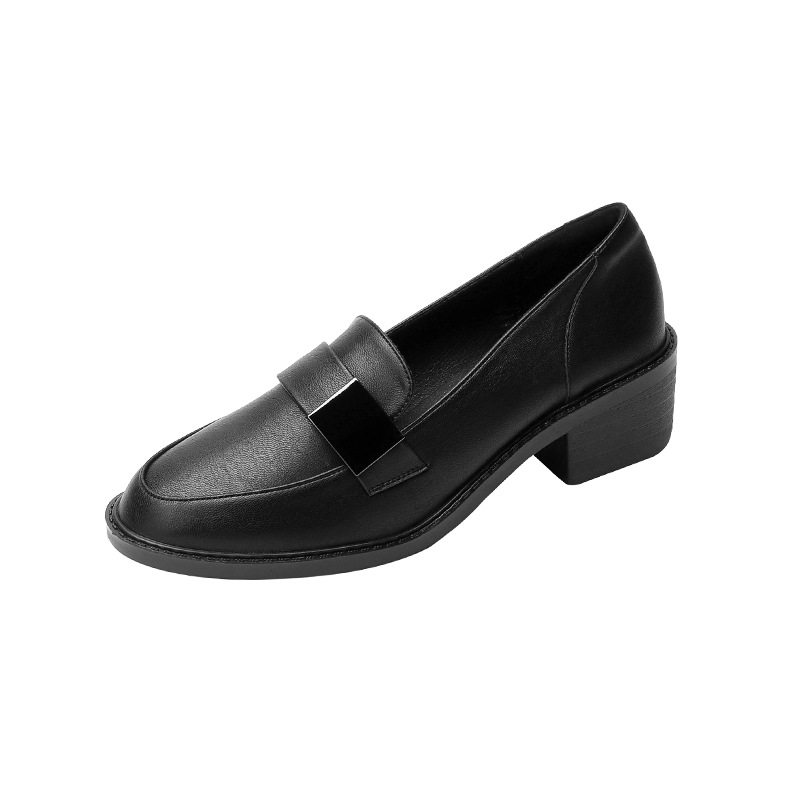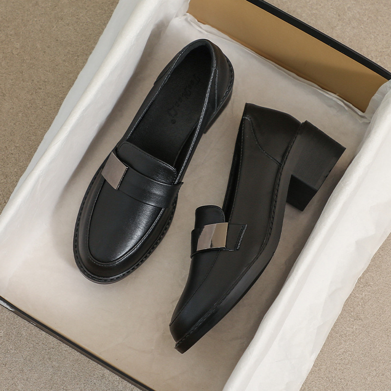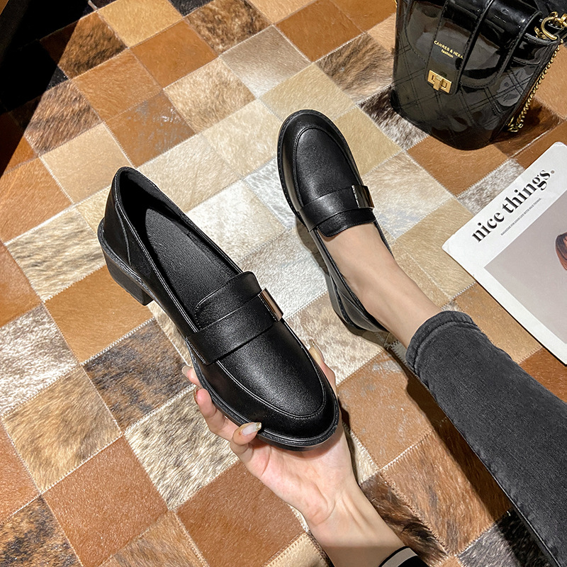 Женские туфли на высоком каблуке из натуральной кожи, осенний стиль 2026, британский стиль, из мягкой кожи, черные, на массивном каблуке, без застежек, рабочие туфли