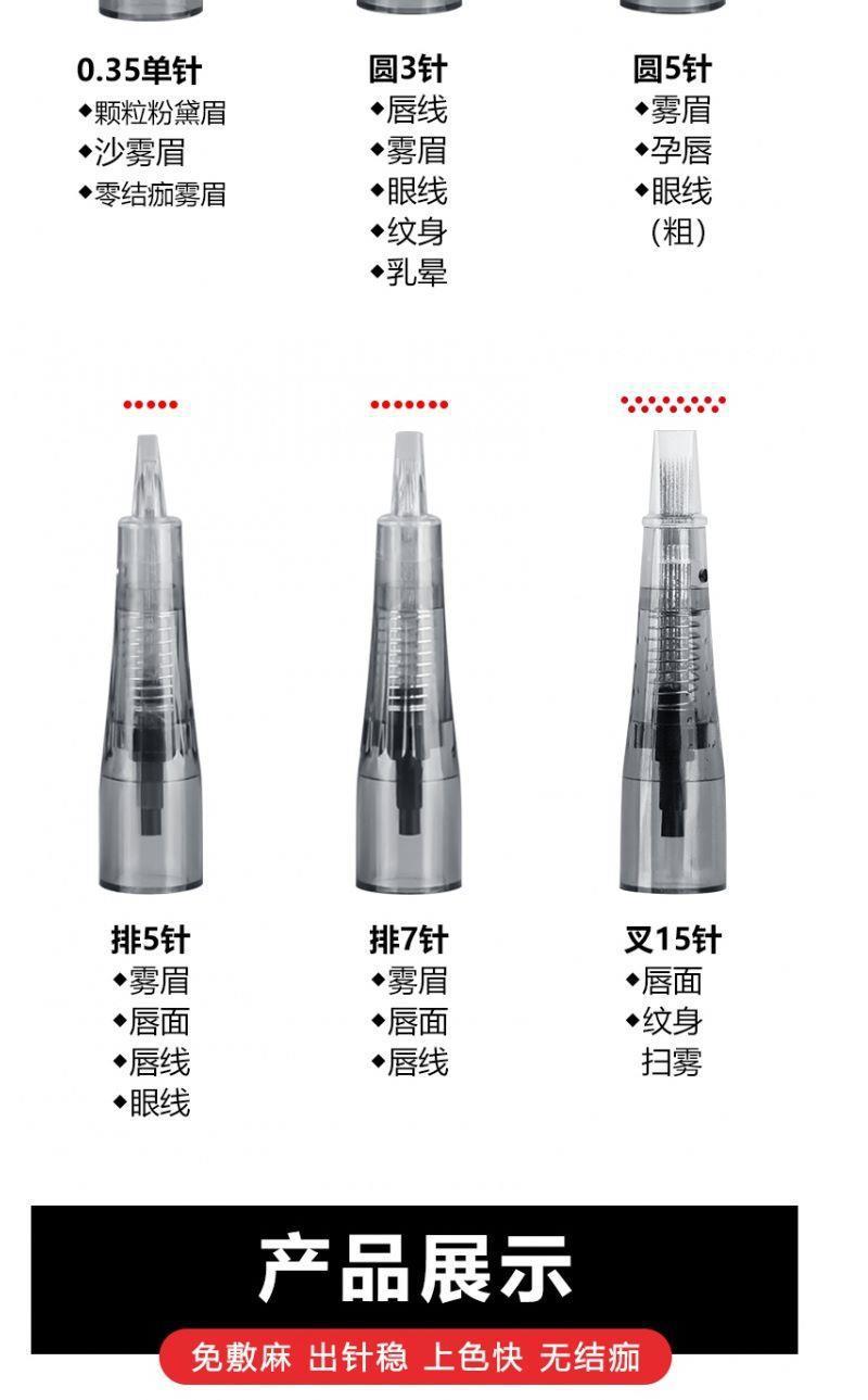 0,18 одинарная игла; 0,25 одинарная игла; 0,3 одна игла; 0,35 одинарная игла; Круглые три иглы; Круглые пять игл; Расположите пять игл; Расставьте семь иголок; Вилка 15 игл (быстрое отбеливание губ); Игла U9 (дикая бровь); 9 игл наномикроигл без анестезии; 12 игл без анестезии наноигл; 36 игл наномикроигл без анестезии; 42 иглы наномикроигл без анестезии; Без анестезии и сохраняющий красоту круглый кристалл.; Без онемения и сохраняющий красоту маленький квадратный кристалл.; Большой квадратный кристалл без анестезии
