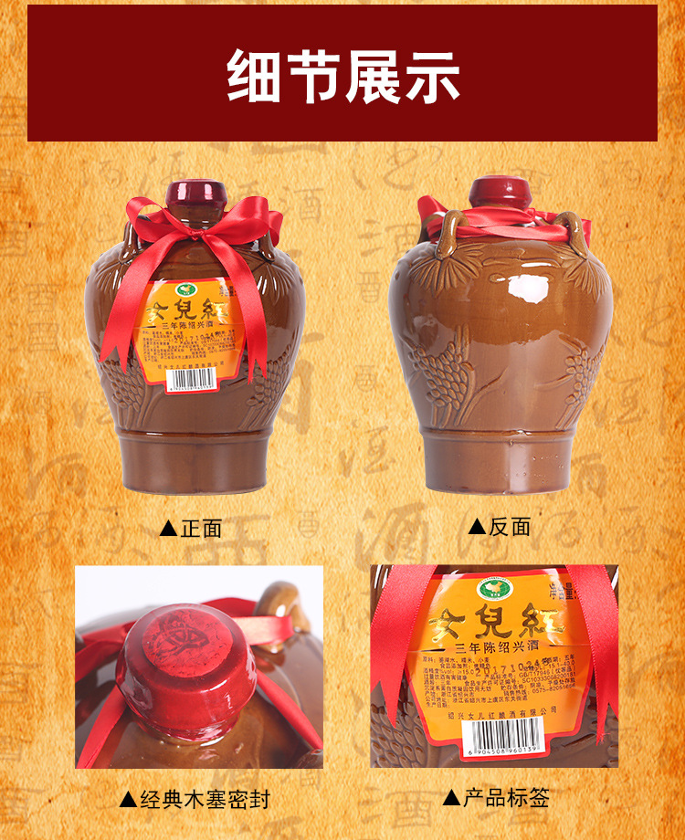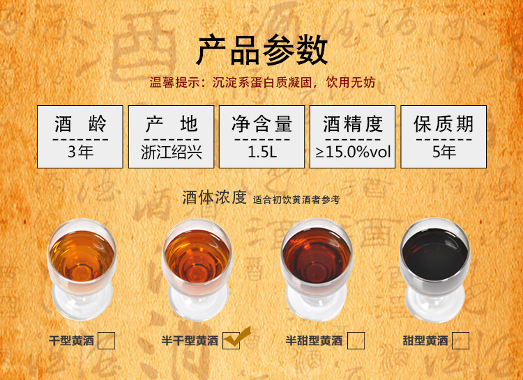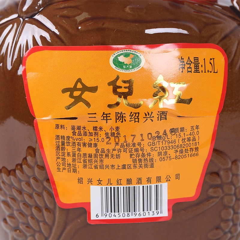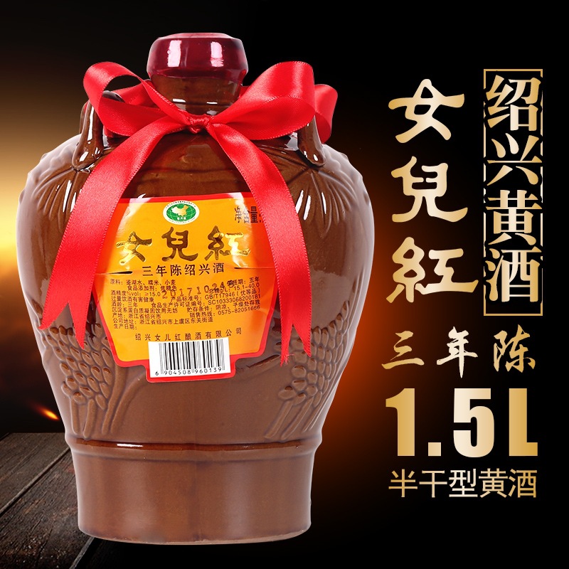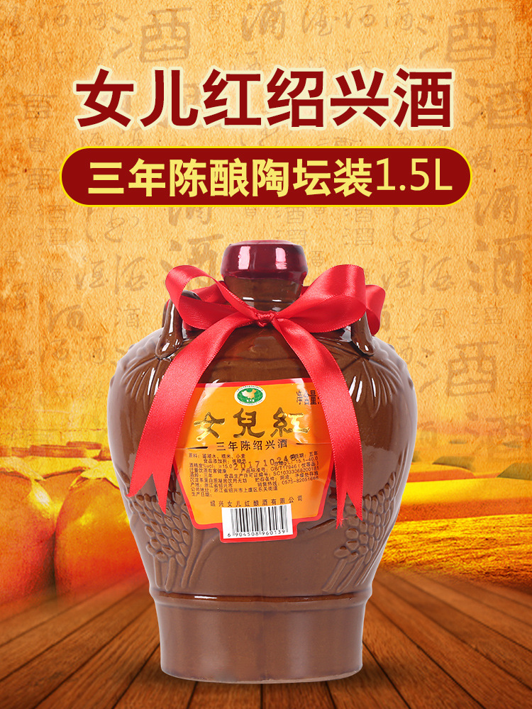 Вино Daughter's Wine, желтое вино Шаосин, трехлетней выдержки, Шаосин Хунхуа Дяо 1.5kg полусухого типа, можно сочетать с рисовым вином Эцзяо, упаковка в банке 1,5 л.