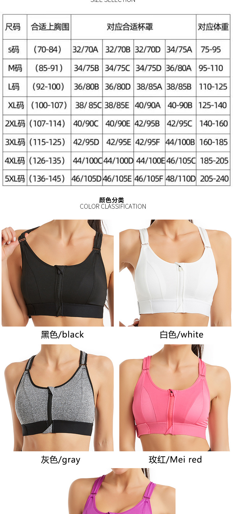 Регулируемый спортивный бюстгальтер с молнией спереди Противоударный жилет без оправы Йога Спорт Крест Красоты Спины Нижнее белье для женщин