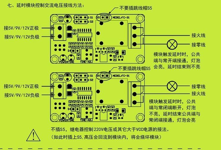 5V12V常开型触发延时开关继电器模块 延时电路定时震动报警器模块
