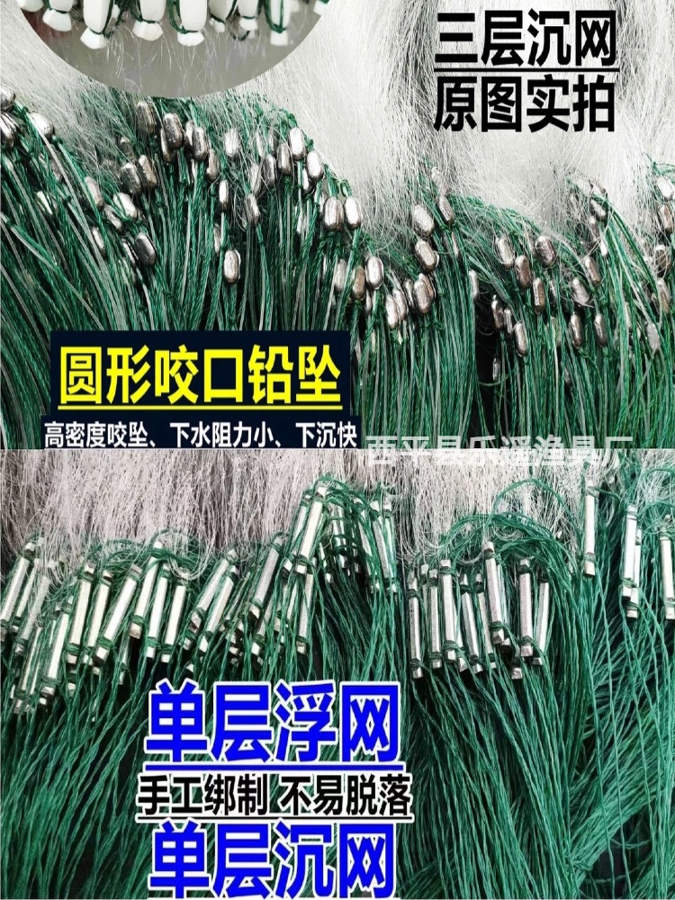 Однослойная трехслойная липкая сетка, рыболовная сеть, рыболовная сеть, рыболовная сеть, рыболовная сеть, шелковая сеть, тонущая сетка, плавающая сетка, подвесная сетка, белая полоса