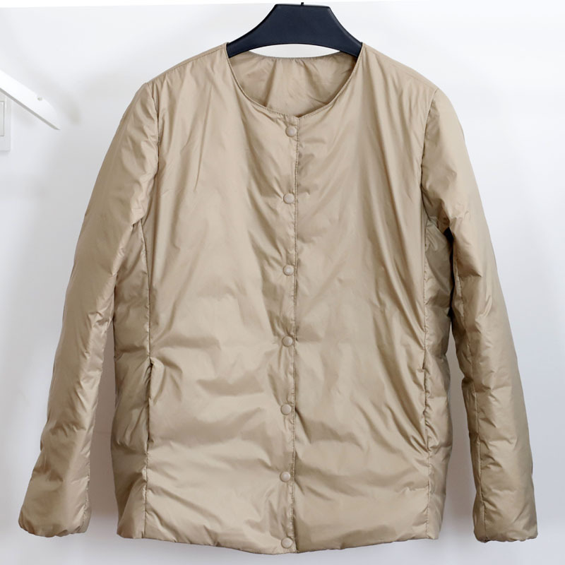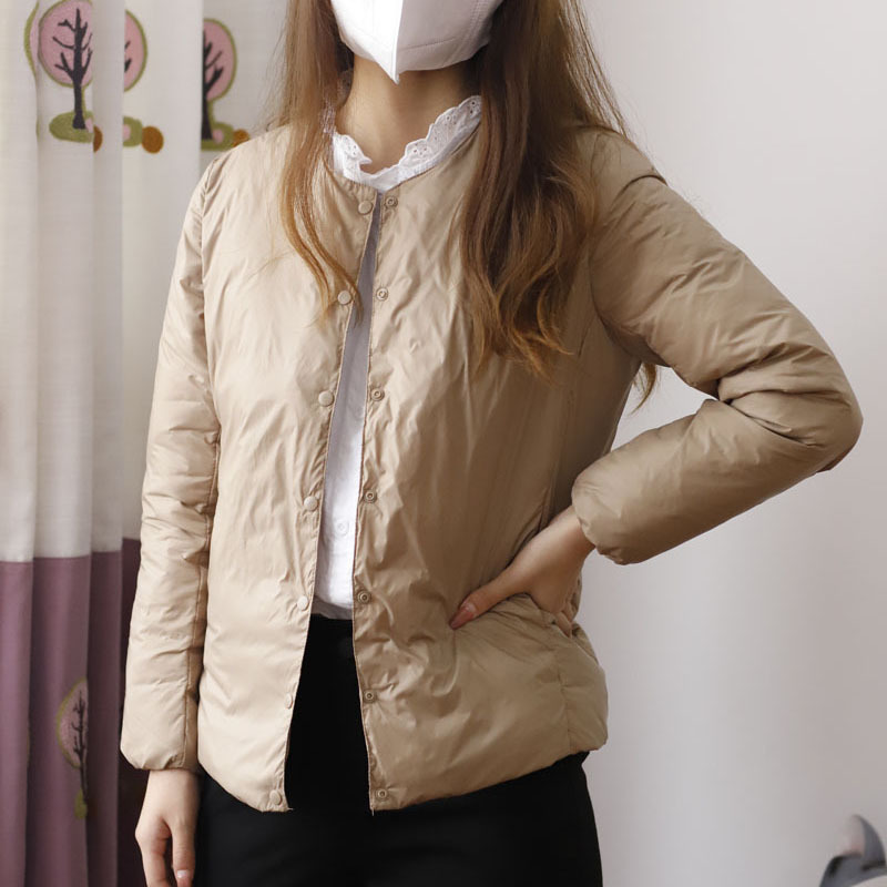 Европейская станция осень-зима Новое нижнее белье без воротника, высокий пушистый легкий пуховик, женское короткое тонкое женское пальто с подкладкой