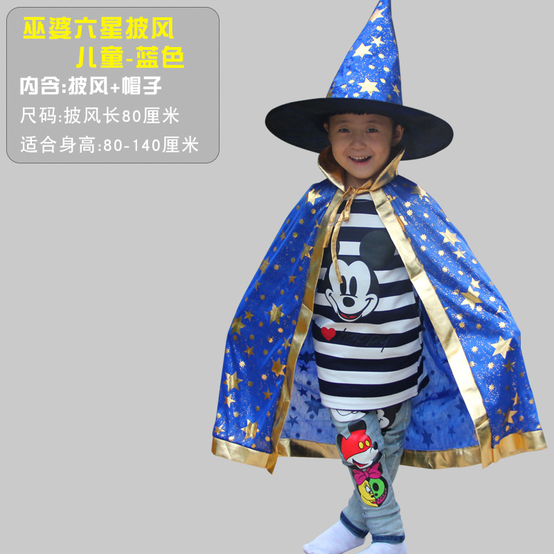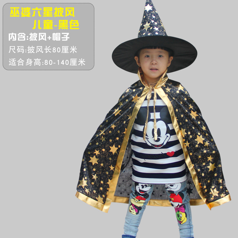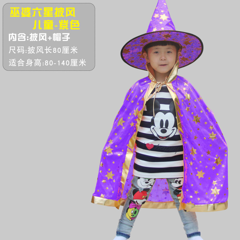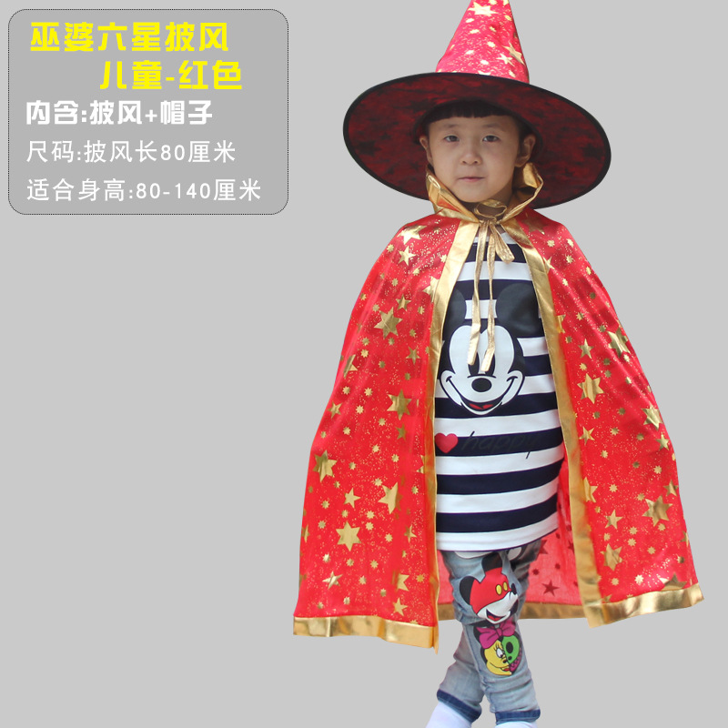 Костюм шляпы ведьмы на Хэллоуин пятизвездочный плащ для взрослых мальчиков и девочек, плащ волшебника, детский сад