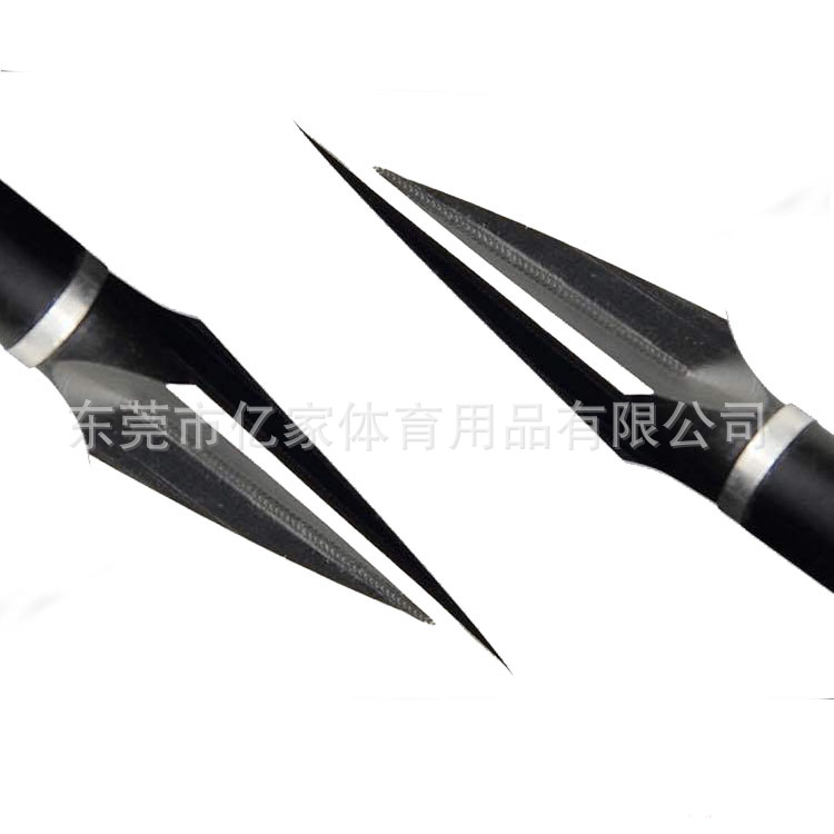 - 东莞市亿家体育用品有限公司主要生产狩猎箭头、(如:翡翠箭头、毒刺箭头、愤怒箭头、斩首箭头,征服箭头、战斗机箭头、斯丁格箭头、放血箭头、烟雾箭头、打击者、夜叉等等)箭杆配件(如:铝座、铜座、防打钉、防爆环、靶头、内插靶头等等)、射鱼鱼鳔等.