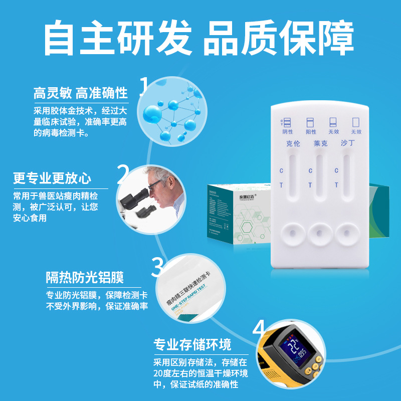 Тест-карта для тройного определения кленбутерола, гидрохлорида кленбутерола и лактодопамина, контроль безопасности пищевых продуктов