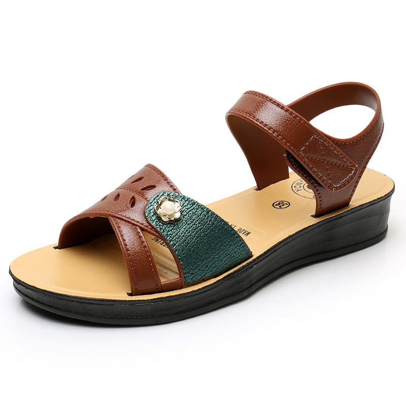 Сандалии для матерей среднего возраста, летние новые модные женские сандалии и тапочки, нескользящая молочная обувь среднего и пожилого возраста на плоской подошве