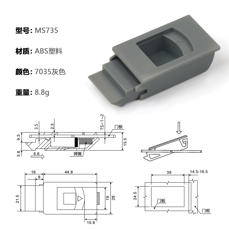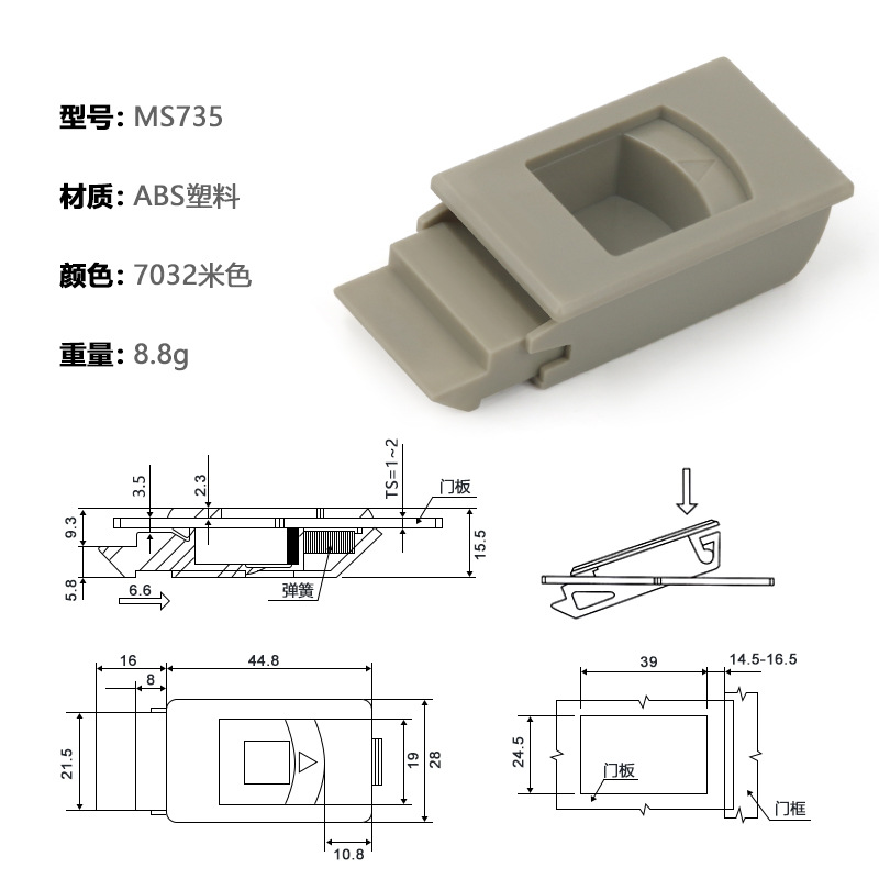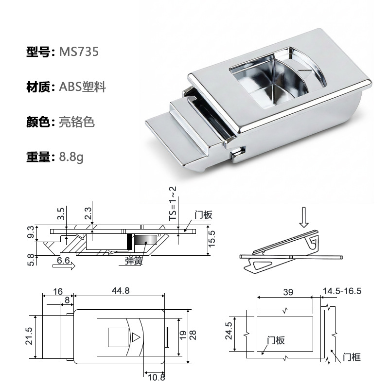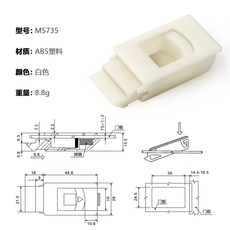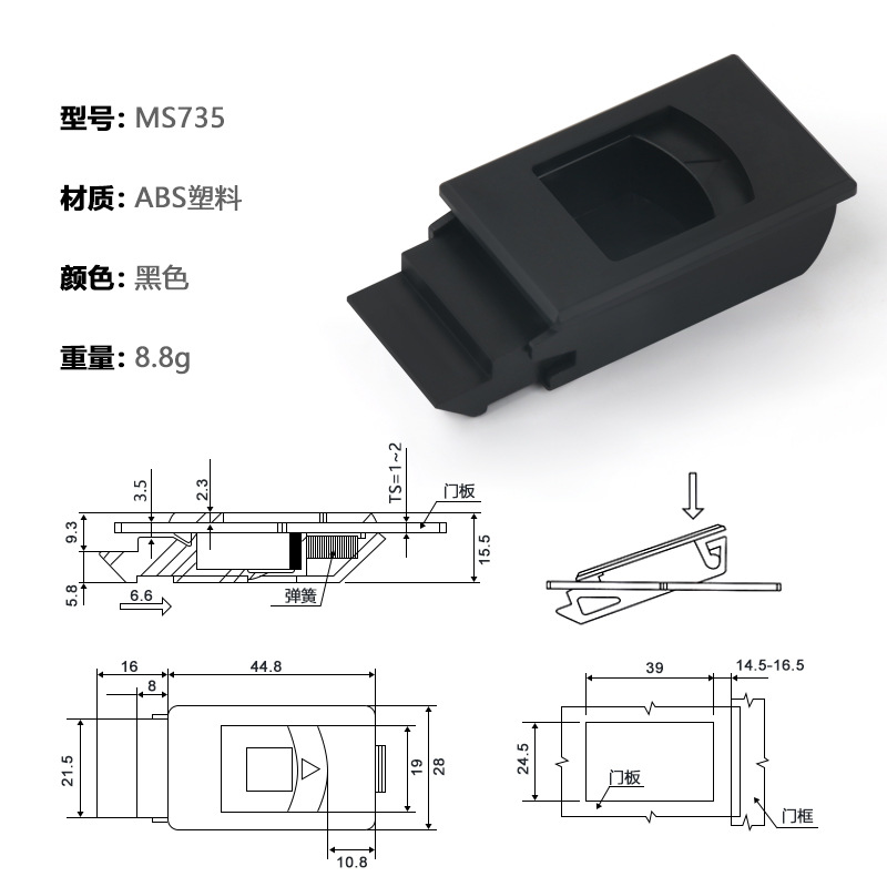 MS735 Распределительная коробка боковая дверная пряжка для базовой коробки MS725 застегнуть нейлон пластиковая пряжка невидимая ручка DK725-3B
