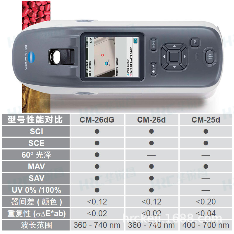 CM-23d тест цвета + точность 0,08 + лампа ксенона 1; CM-25cG тест блеска цвета + точность 0,04 + светодиод источника света; CM-25d тест цвета + точность 0,04 + ксеноновая лампа 1; Тест цвета CM-26d + УЛЬТРАФИОЛЕТОВАЯ лампа 2 ксенона точности 0,02 + регулировки; Точность регулировки 0,02 + лоск цвета CM-26dG + УЛЬТРАФИОЛЕТОВАЯ лампа ксенона 2