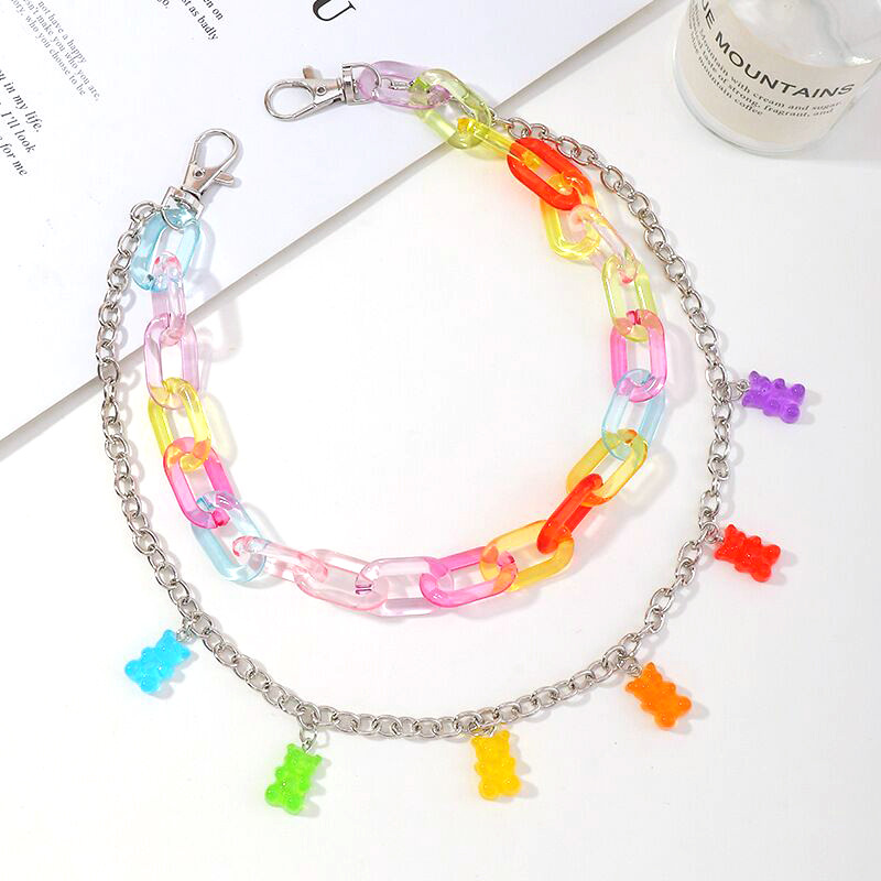 Цепочка для брюк Candy Bear; Цепочка для брюк с медведем, двухслойная; Цепочка для брюк в стиле «бабочка»