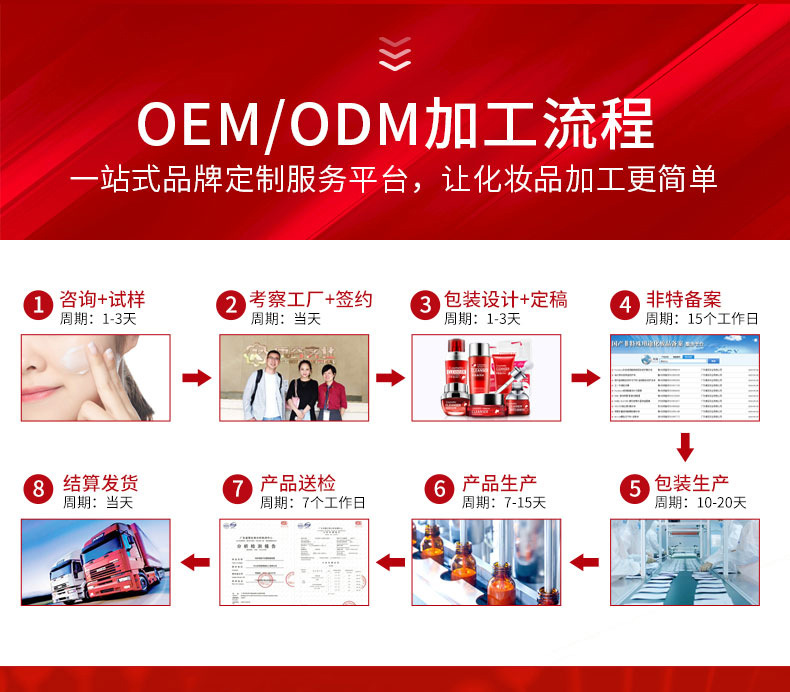 主营产品服务:化妆品oem加工,护肤品odm贴牌,次抛oem加工,护肤套装贴牌加工等
