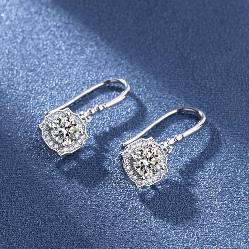 Серьги 50 баллов + 50 баллов (высокоуглеродный алмаз); Серьги 50 баллов + 50 баллов (моиссанит); Серьги 1 карат + 1 карат (алмаз с высоким содержанием углерода); Серьги 1 карат + 1 карат (моиссанит)