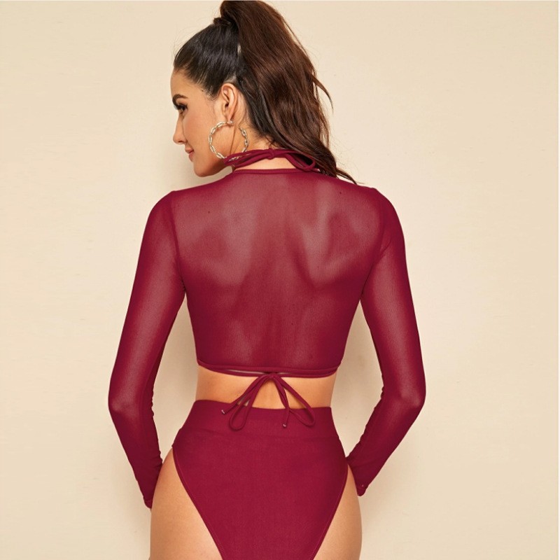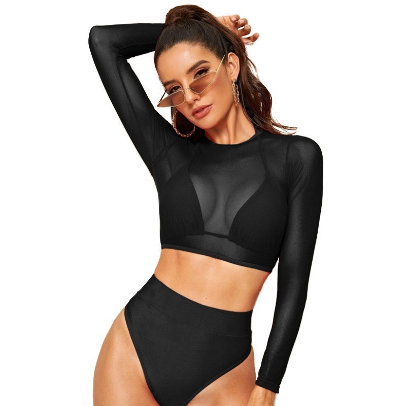 2022 новая европейская и американская сексуальная сплит-купальник большой размер три комплекта сетка пряжа бикини с длинными рукавами BIJINI