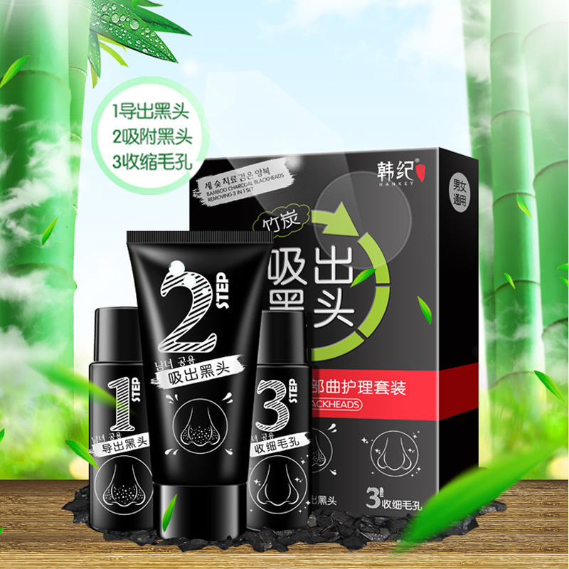 Корейский бамбуковый уголь для удаления черных точек, трехступенчатый изогнутый набор для ухода за лицом, отрывная маска, Т-образная зона, производитель косметики