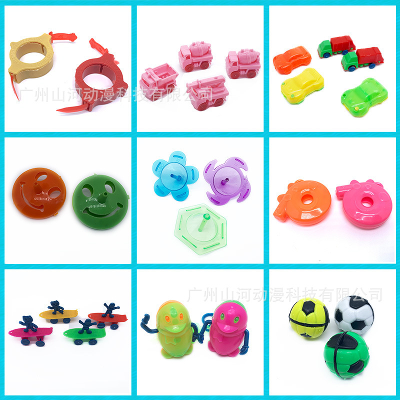 【玩具】:各种动物、植物、车子、足球、陀 螺、卡通形象玩具混搭,定期更新。