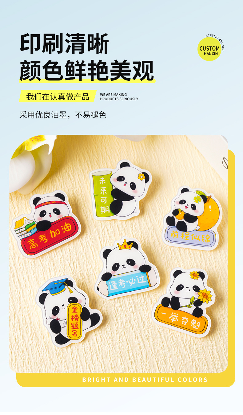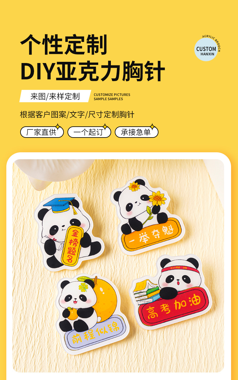 Мультяшная акриловая брошь-значок с пандой, брелок-оберег для студентов и абитуриентов, аксессуар для самостоятельного творчества, небольшой подарок, персонализированный значок