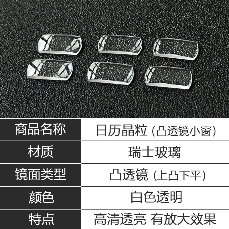 Двойной календарь зерна 10x5 мм Дата недели Выпуклая линза Маленькое окно Календарь Увеличение Швейцарские стеклянные часы Аксессуары для объектива