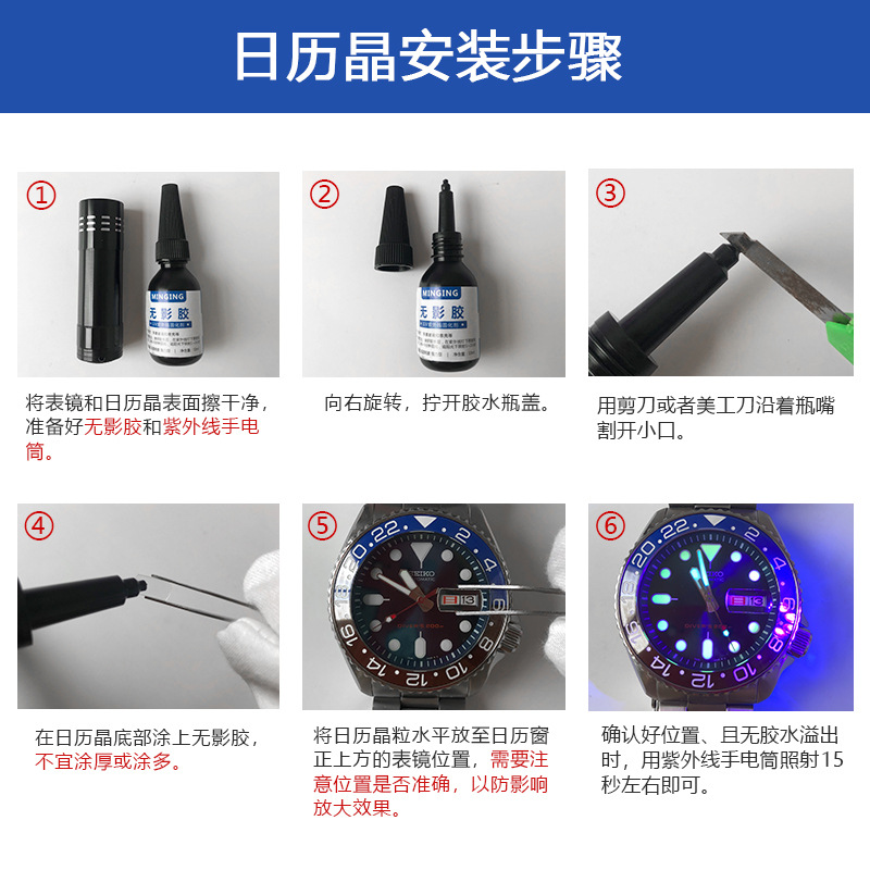 注:没有配送胶水,胶水需另外订购。推荐使用UV无影胶粘贴,比较方便操作。