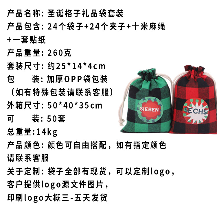 Рождественский пакет из клетчатой ткани карманный набор спот оптом хлопок мешок красный черный клетчатый подарочный пакет конфеты веревочный мешок