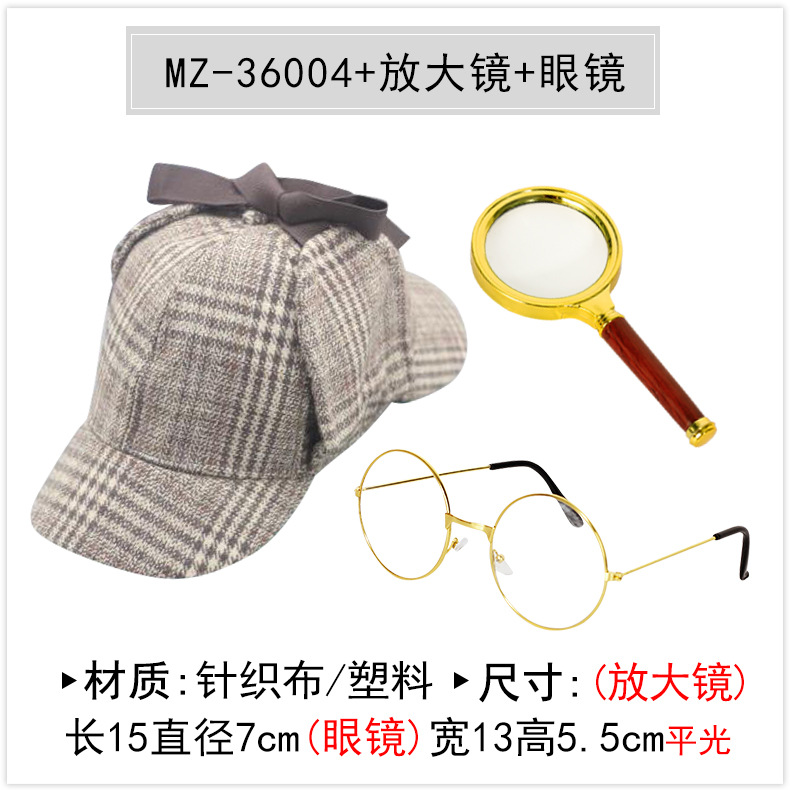 Детективная шляпа Олень Охотничья шляпа Детектив Шерлок Холмс Труба Реквизит Детектив Шарлотта Может Лупа Оборудование