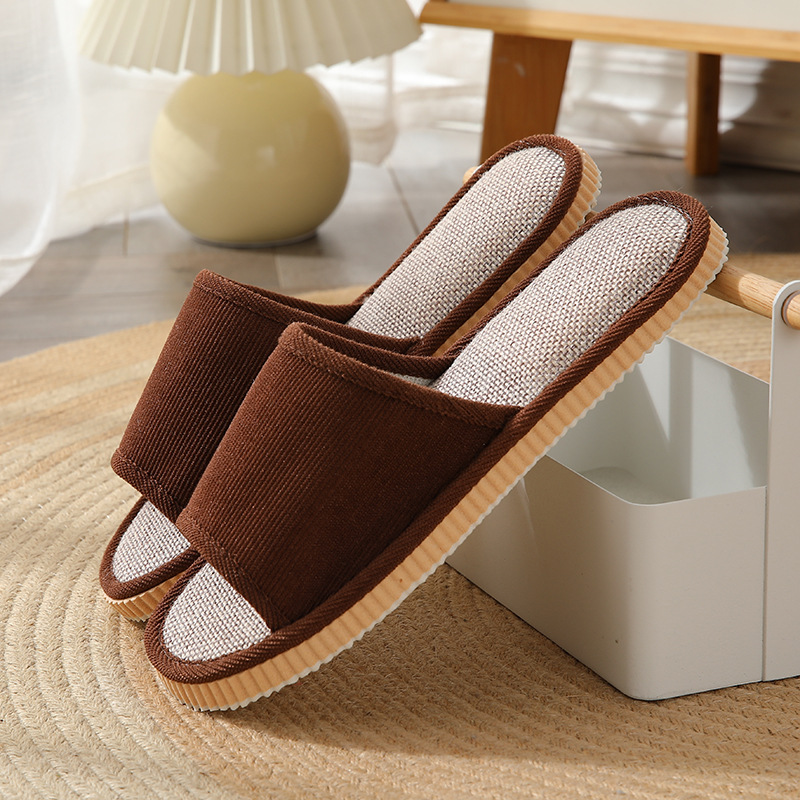 2025 новый вельвет мужские и женские четыре сезона льняные тапочки