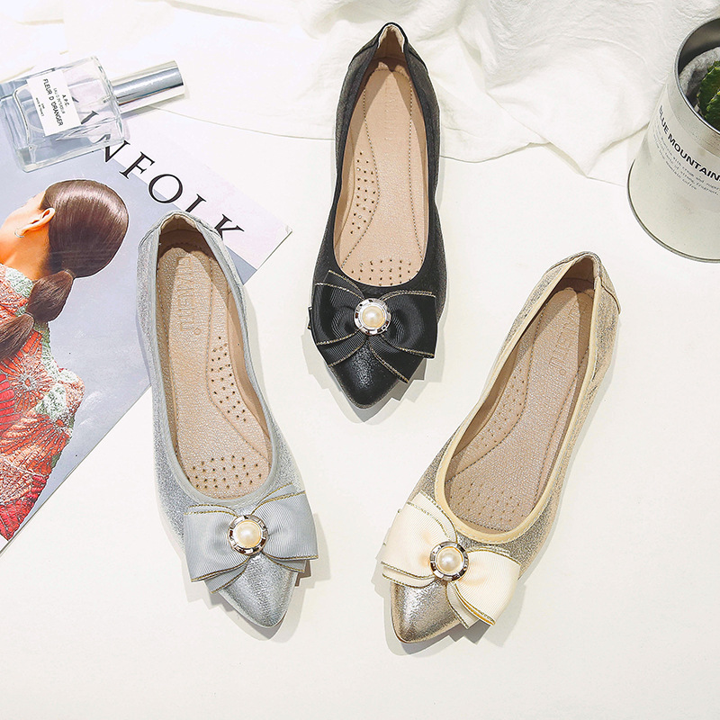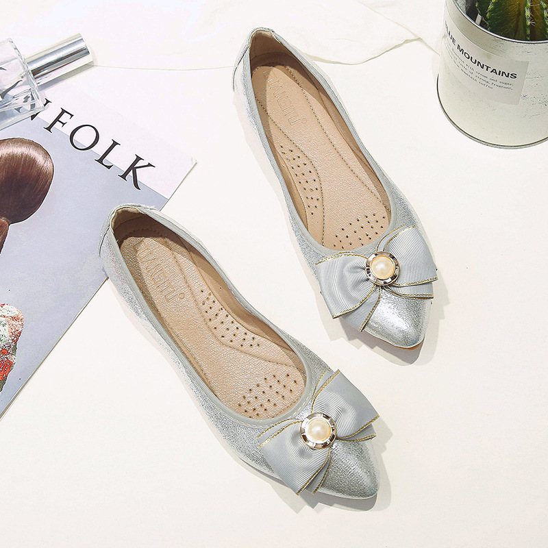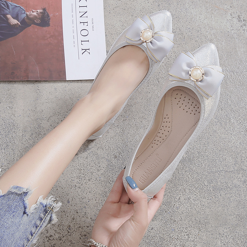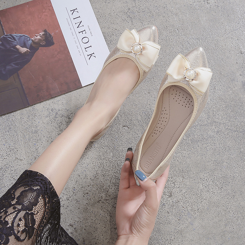 Туфли на плоской подошве Женские 2021 Новые весенне-осенние туфли для матери с жемчужным вечерним Бриз с мелким ртом и мягкой подошвой