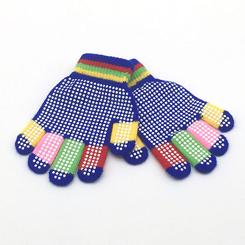 Цветные студенческие спортивные лыжные противоскользящие перчатки в горошек со смещением, детские вязаные теплые перчатки оптом