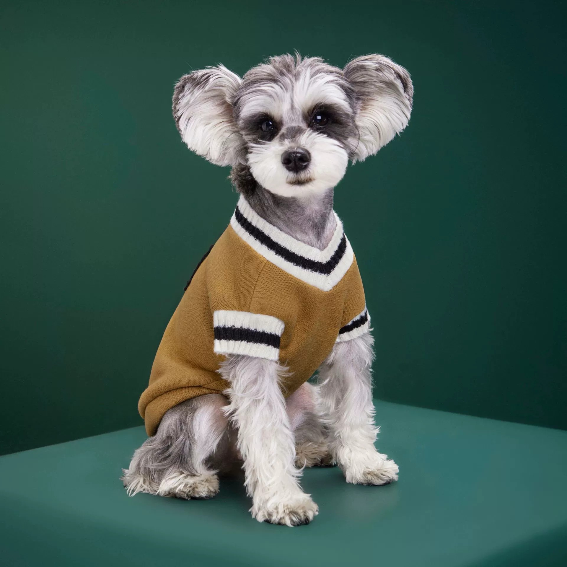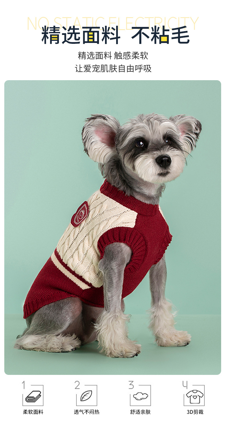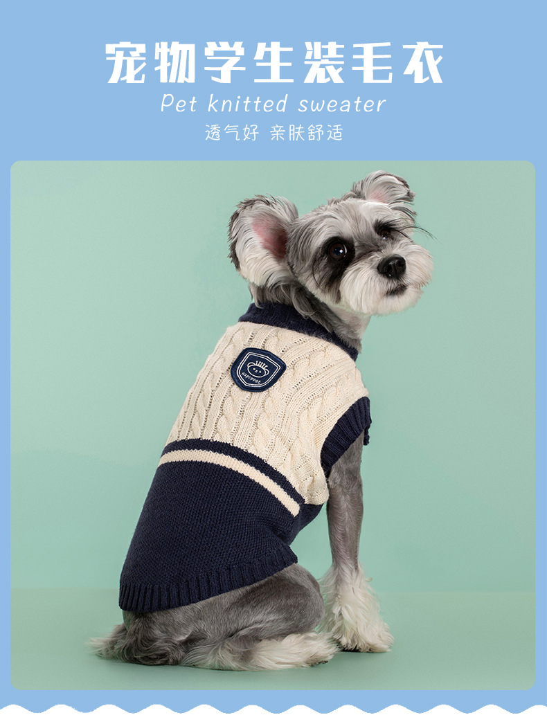 Одежда для домашних животных осень и зима Новый вязаный жилет с V-образным вырезом жилет в стиле преппи Тедди Бомеи модная одежда для собак оптом
