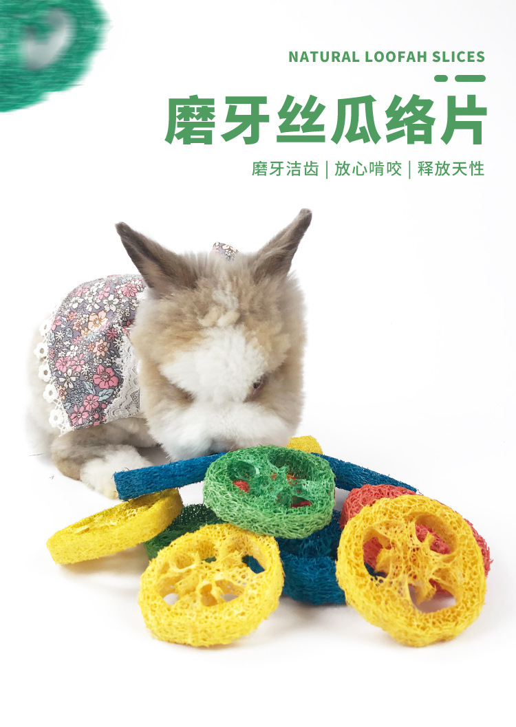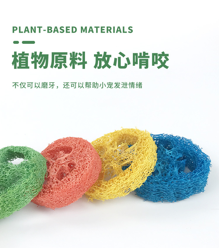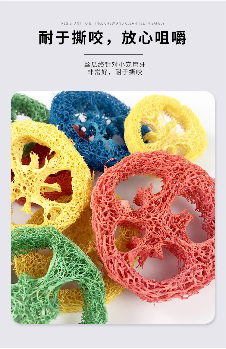Жевательные ломтики люфы для животных, разноцветное волокно люфы для чистки зубов, устойчивые к жеванию игрушки для игр и скрежетания зубами для хомяков и шиншилл.