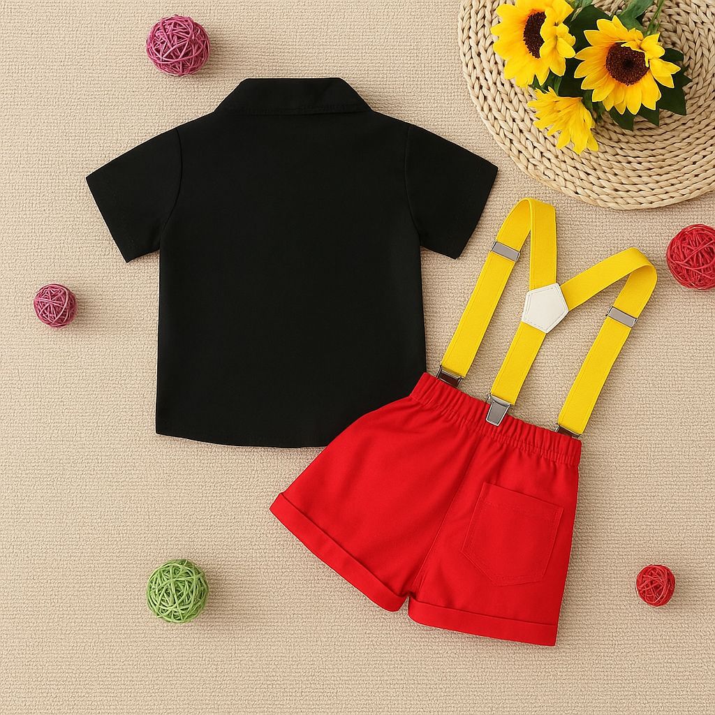 Новый трансграничный летний костюм для детей, рубашка с короткими рукавами и галстуком для мальчиков + шорты с красными ремешками, комплект из двух предметов