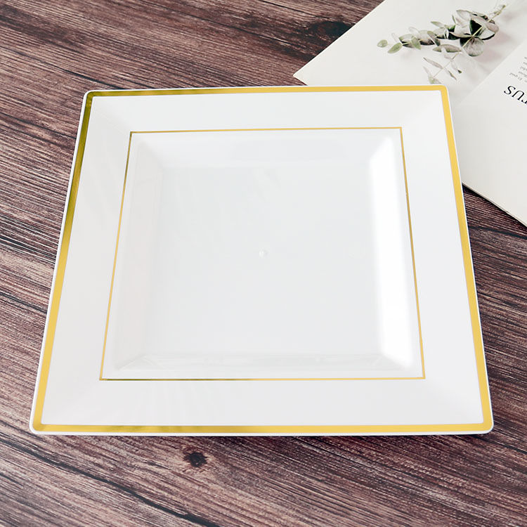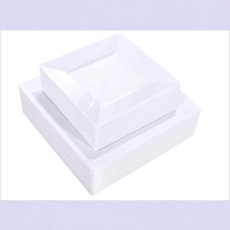 6,5/9-дюймовая жесткая пластиковая обеденная тарелка PS Черная Квадратная тарелка в Пномпене Одноразовая обеденная тарелка Белая тарелка Европейская Вечеринка Квадратная тарелка
