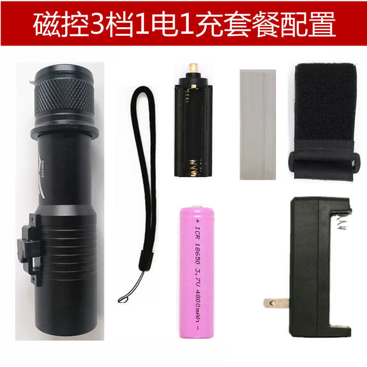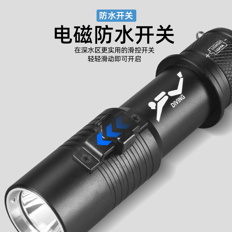 Forward push Новый магнитный переключатель для дайвинга сильный фонарик дальнего действия Третья передача T6 желтый логотип L2