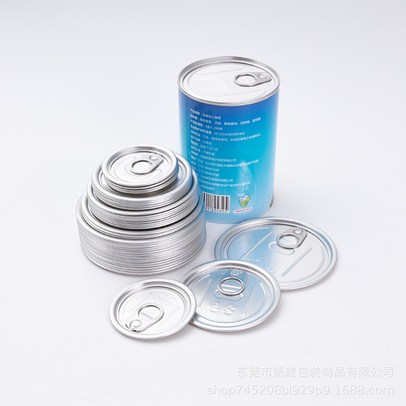 东莞市凯建包装制品有限公司专业生产制作食品级包材五金配件等如:铝合金易拉盖 铝箔易撕盖 铝盖 铝底 马口铁盖 马口铁底 子母盖等研制与开发,可根据客户要求,设计、生产不同直径、长度、款式的盖子。与一般盖相比,铝合金易拉盖具有所占空间少、结实耐用、密封性好、防潮、防锈、保质期长等优点。广泛用于马口铁罐 纸易拉罐 PET易拉罐等、糖果、干货、酒类、茶叶、种子、饲料、香料等产品首选的销售包装。易拉盖结构款式简单、高档雅致、利于环保、成本低,更有助于产品的品牌建设,提升公司形象,使贵公司的产品在激烈的市场竞争中脱颖而出,取得更理想的销售业绩。 “品质优良、交货及时、价格优惠、一对一跟进服务”是本司一贯秉持的宗旨,欢迎各方来电来函垂询、洽商。