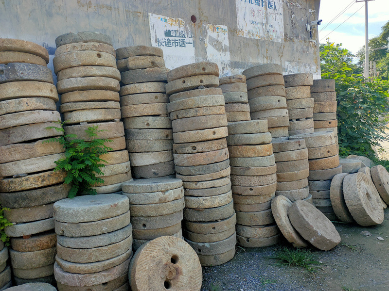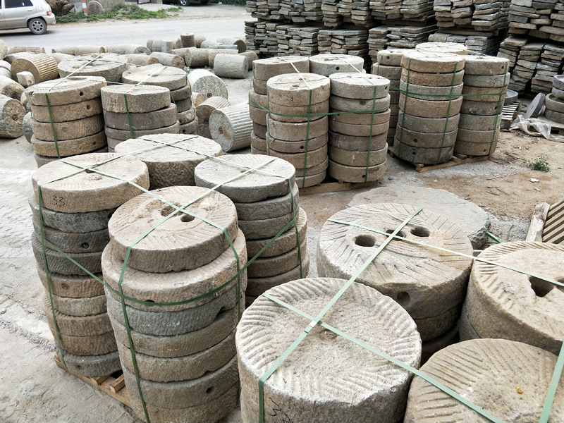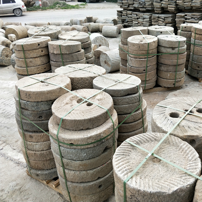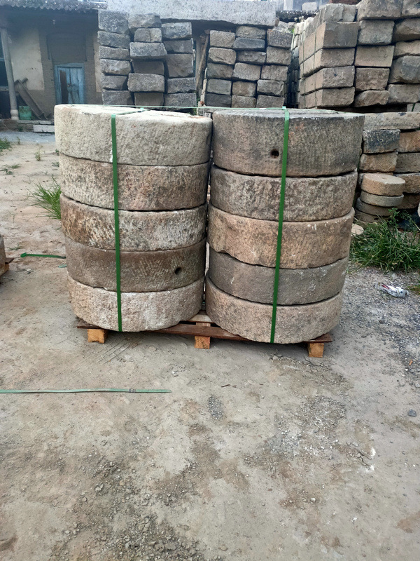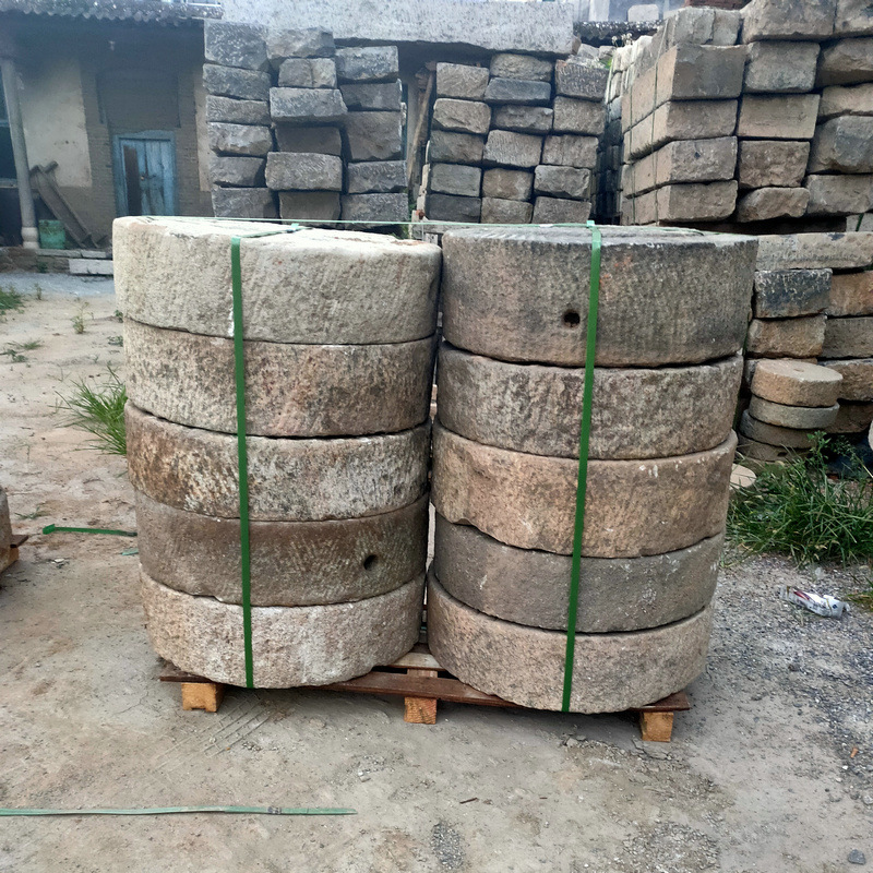 Старая толочина, деревенская старинная каменная мельничная доска, ступенька-плита, старинная каменная плита, каменный роллер, брусчатка, каменный материал, старинная каменная мельница.