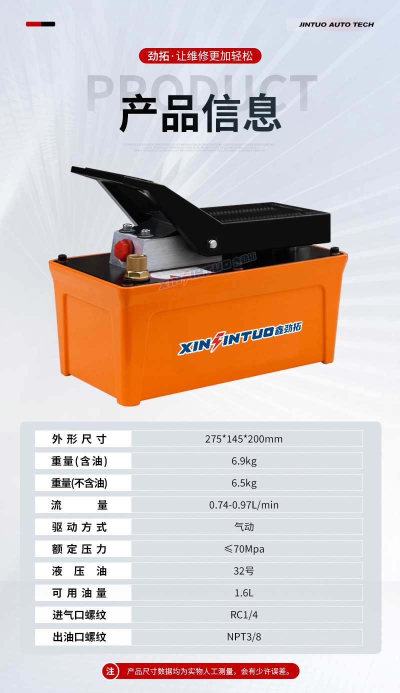 Пневмогидравлический насос Jintuo 2,3 л, портативный педальный насос 1,6 л, цилиндр для листового металла